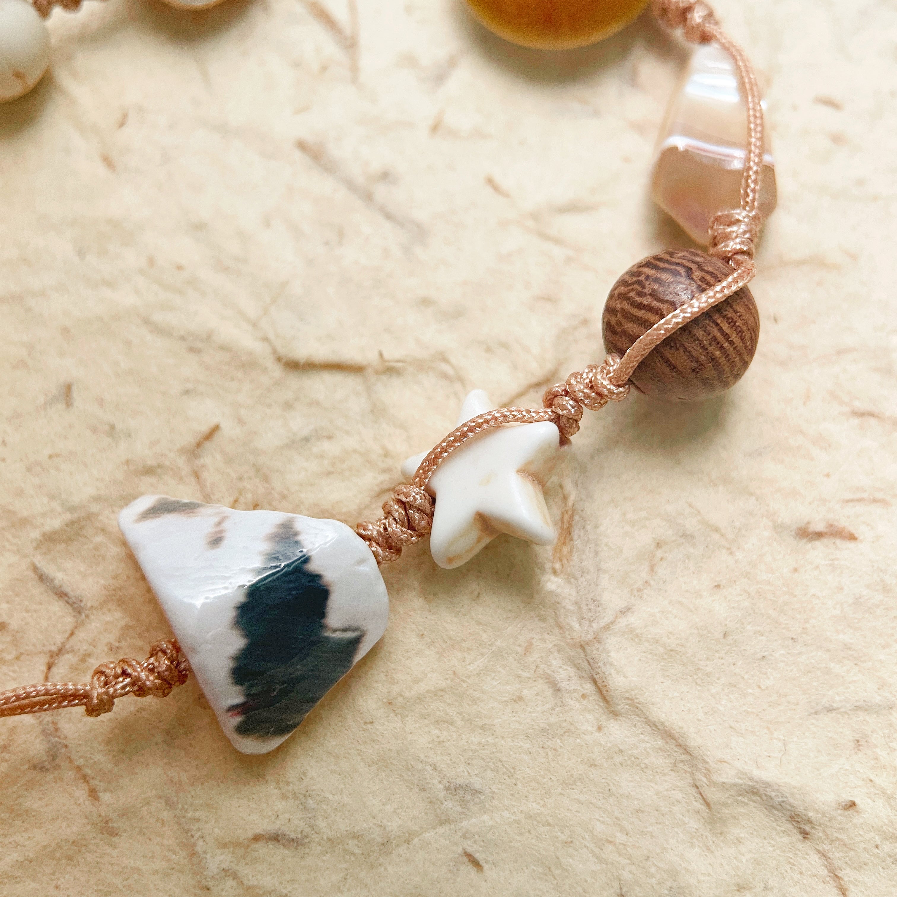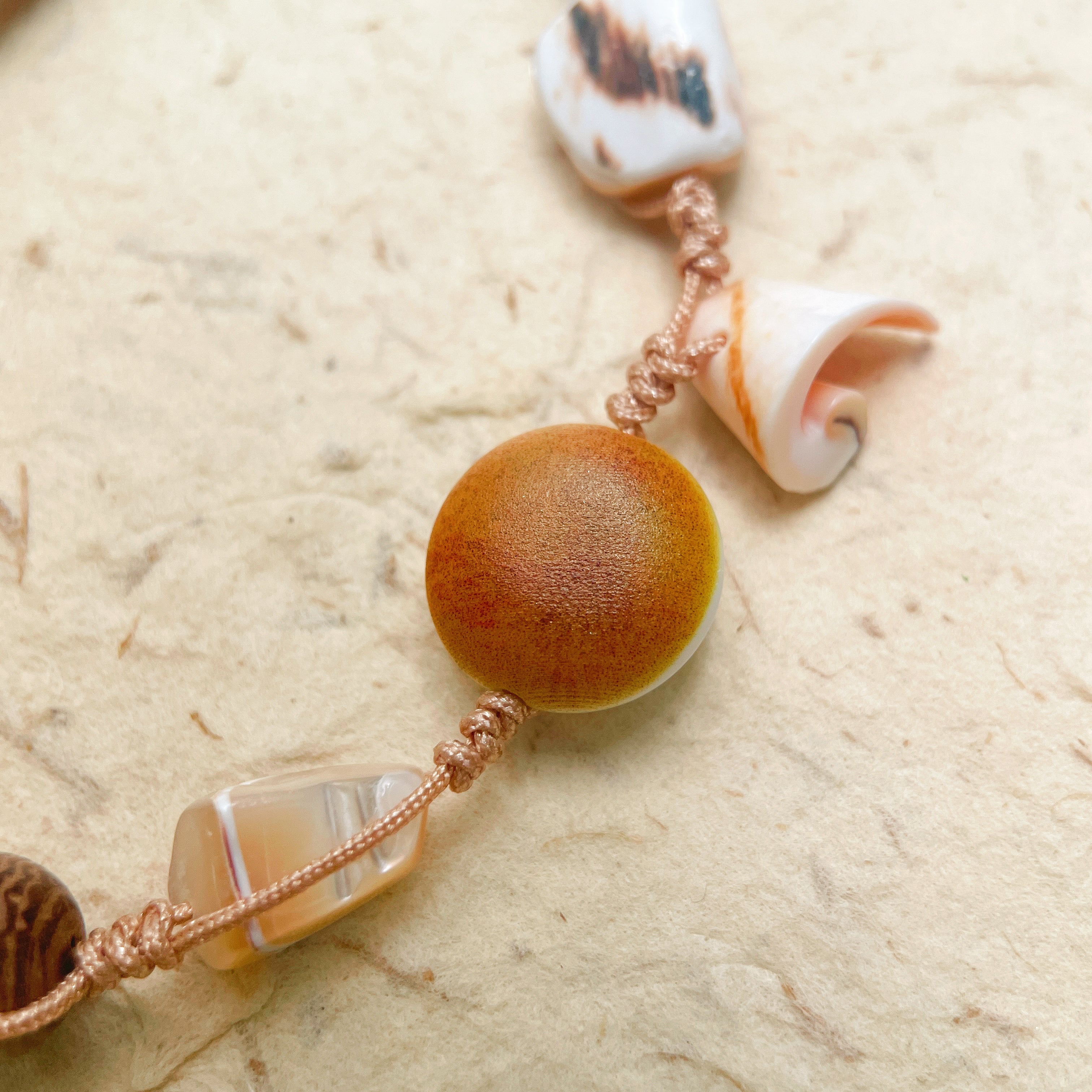 Finished with a dark **wood accent bead**, it creates a grounded, **chunky boho aesthetic** that pairs perfectly with beachwear.