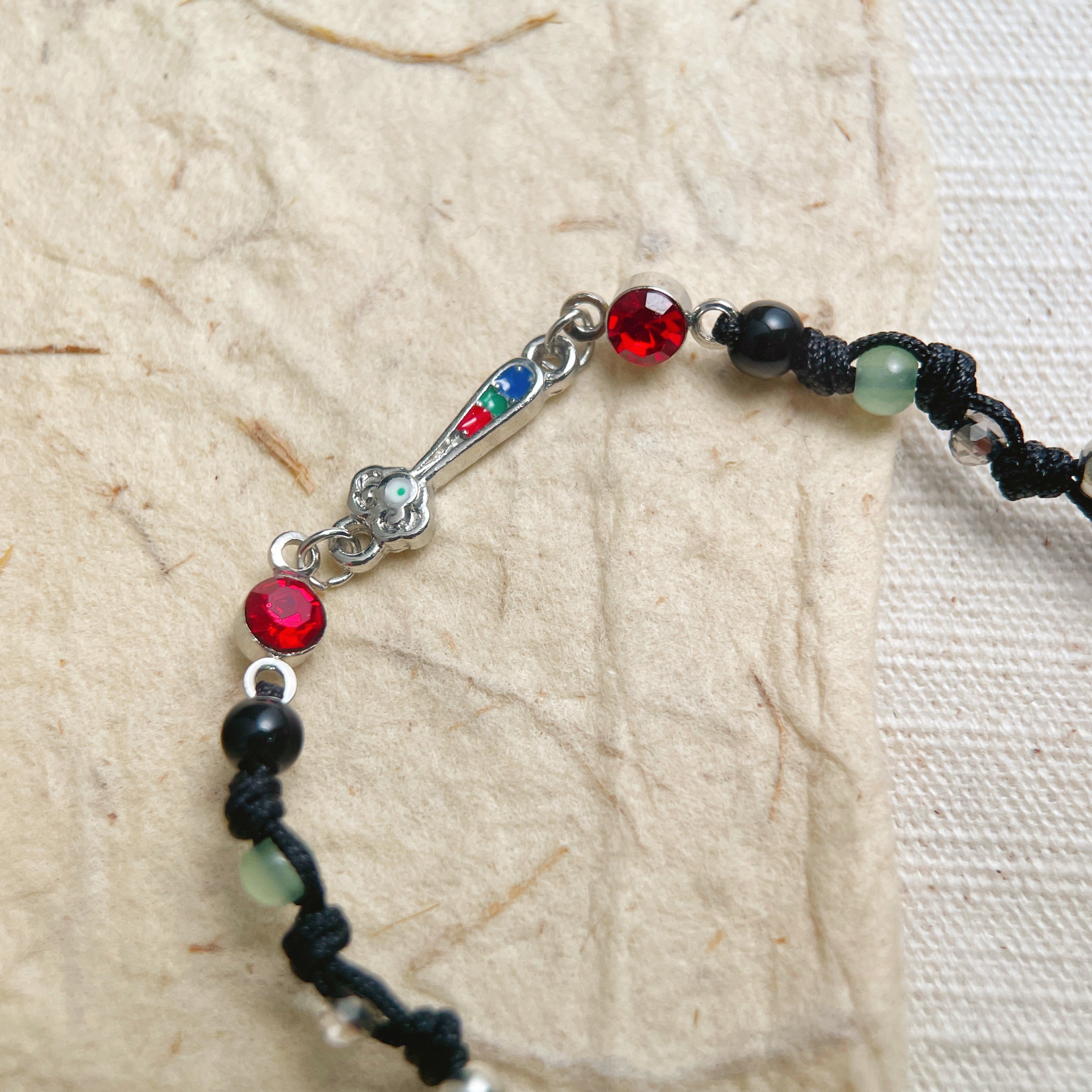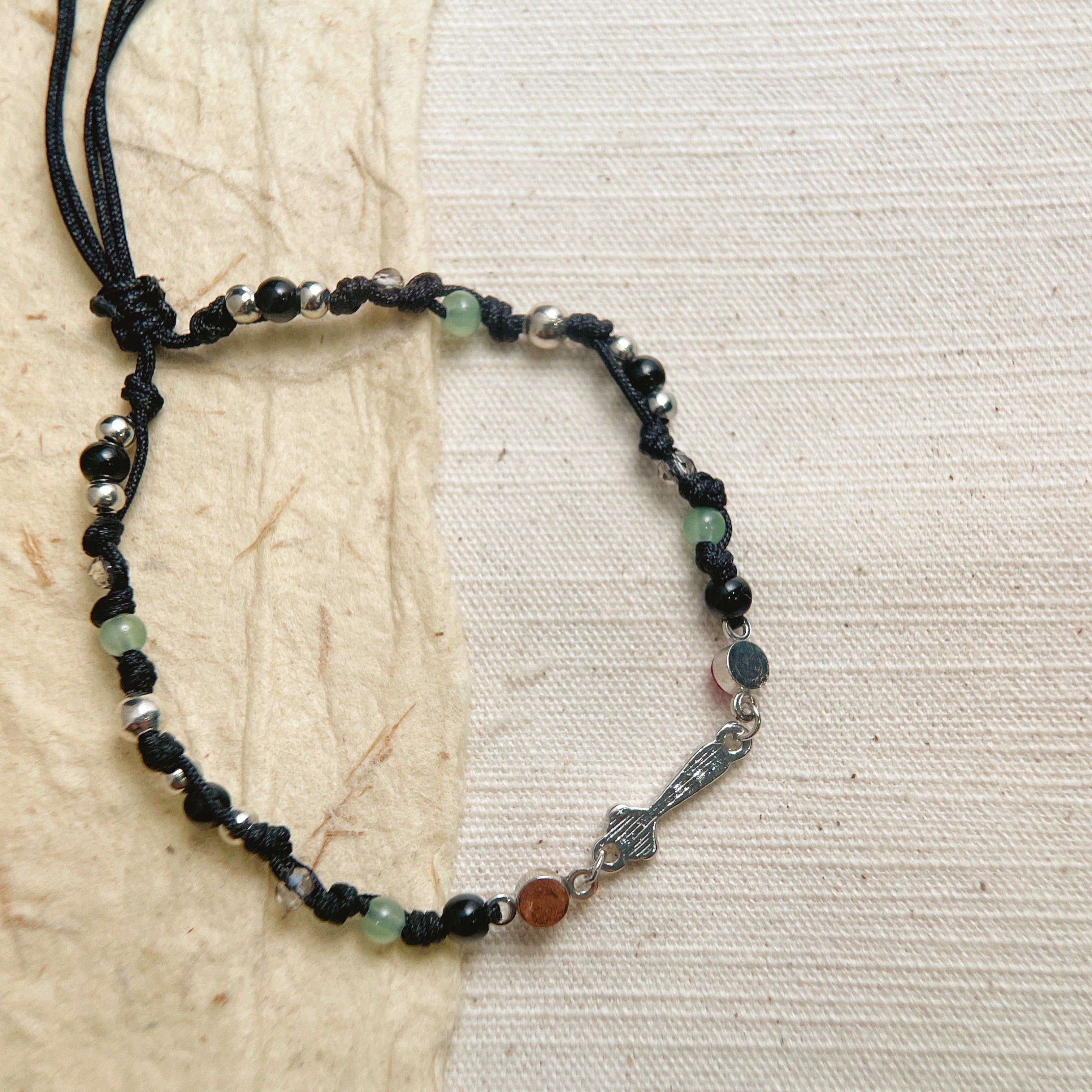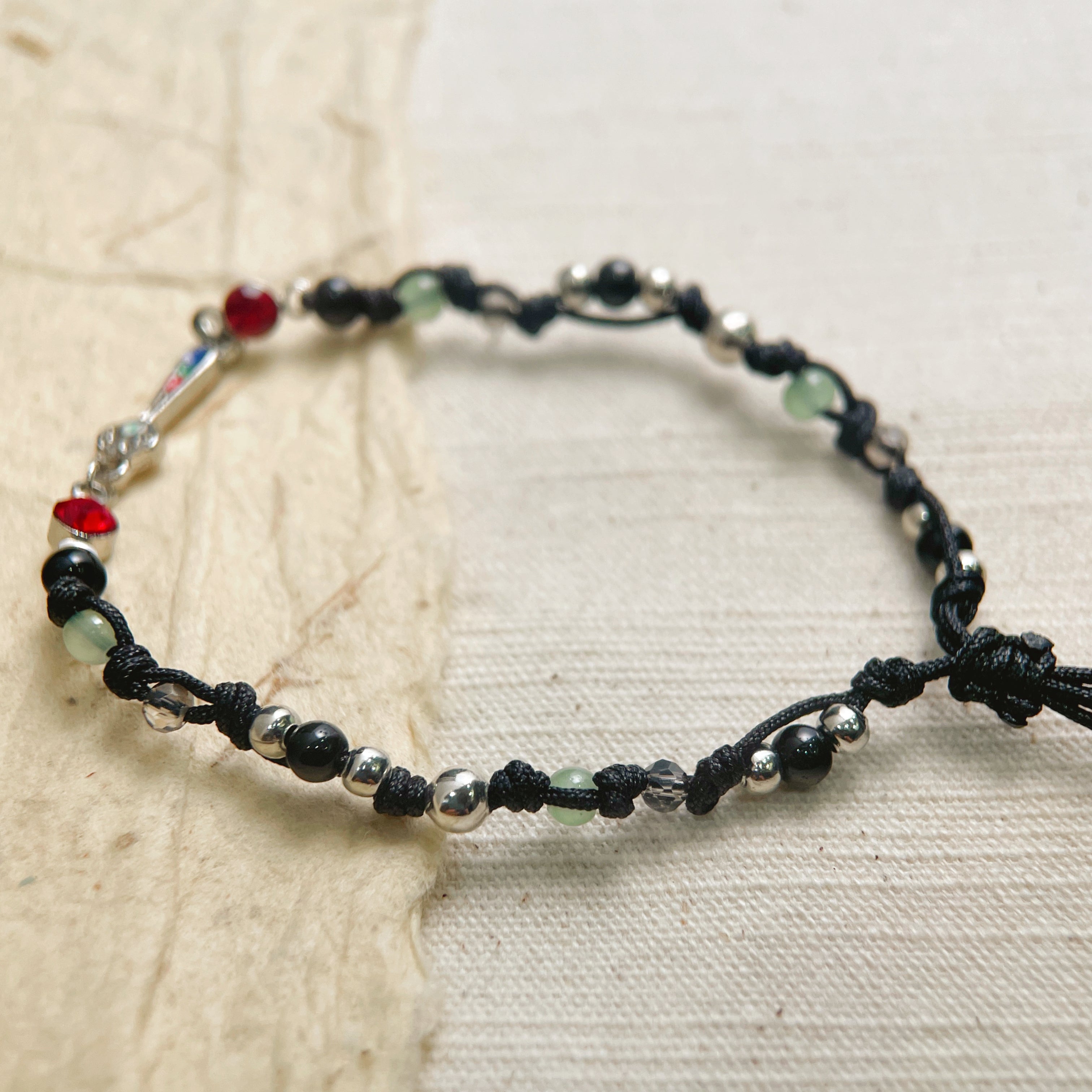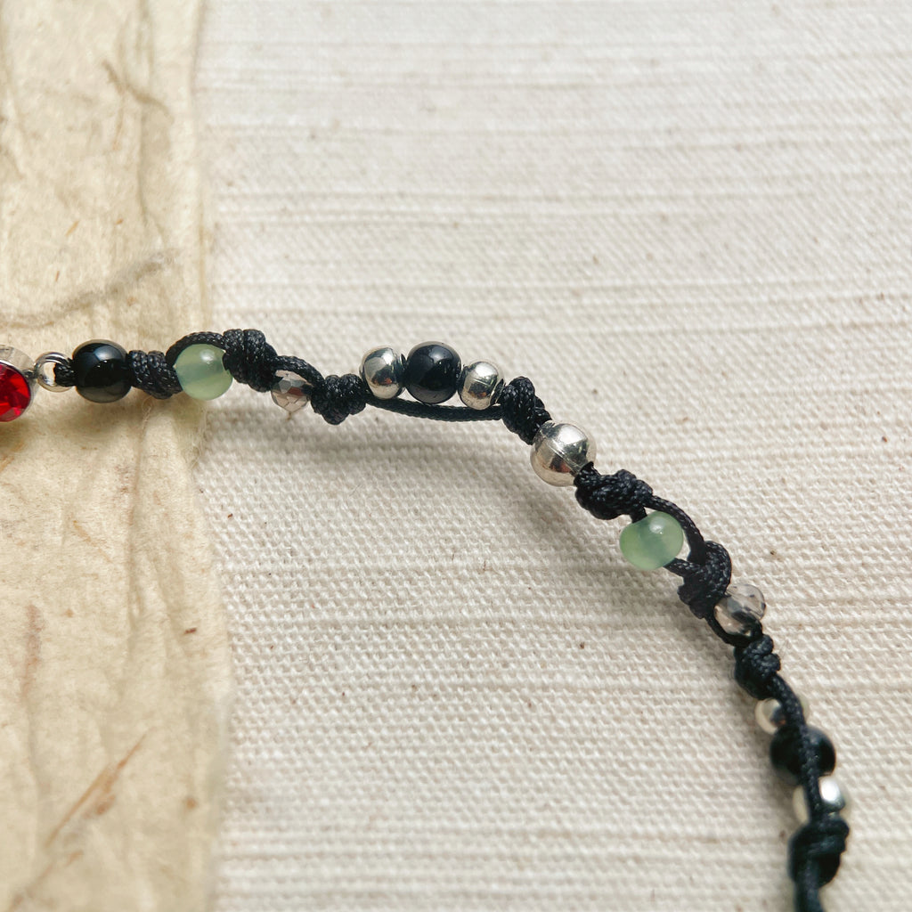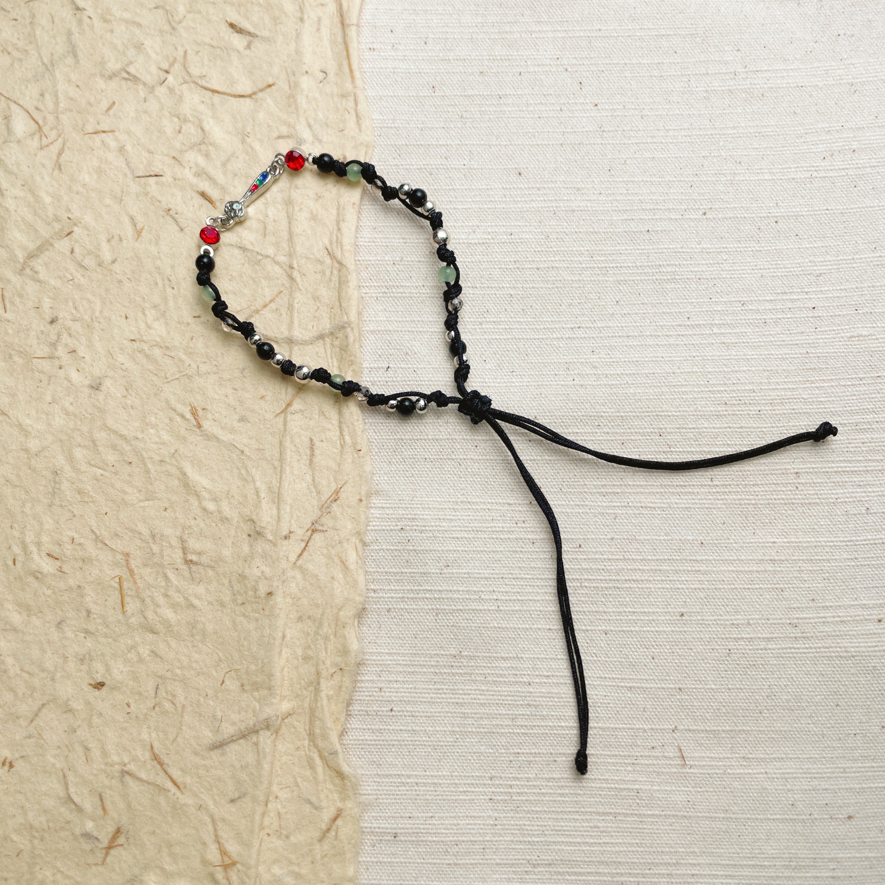 • Materials: Braided Cord, Glass Beads, Metal Alloy