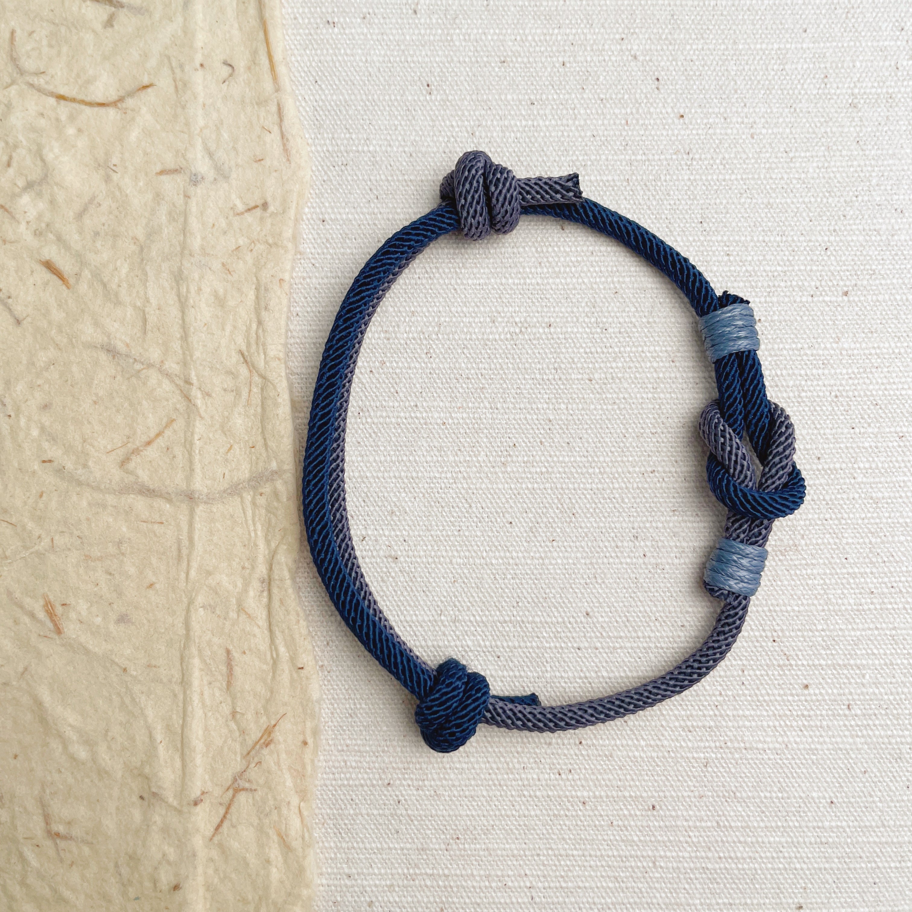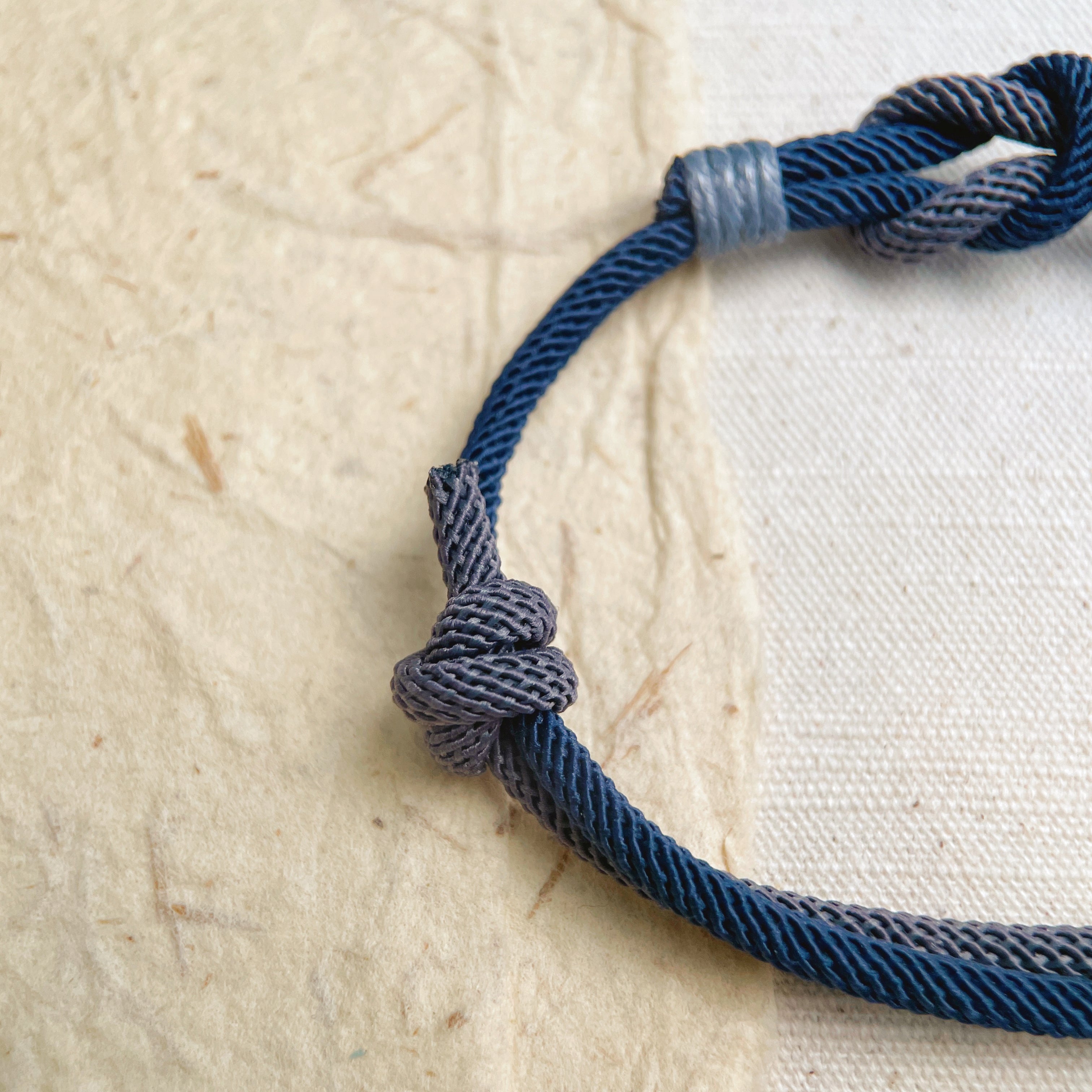 Handmade Blue & Gray Braided Cord Bracelet – Minimalist Woven Design