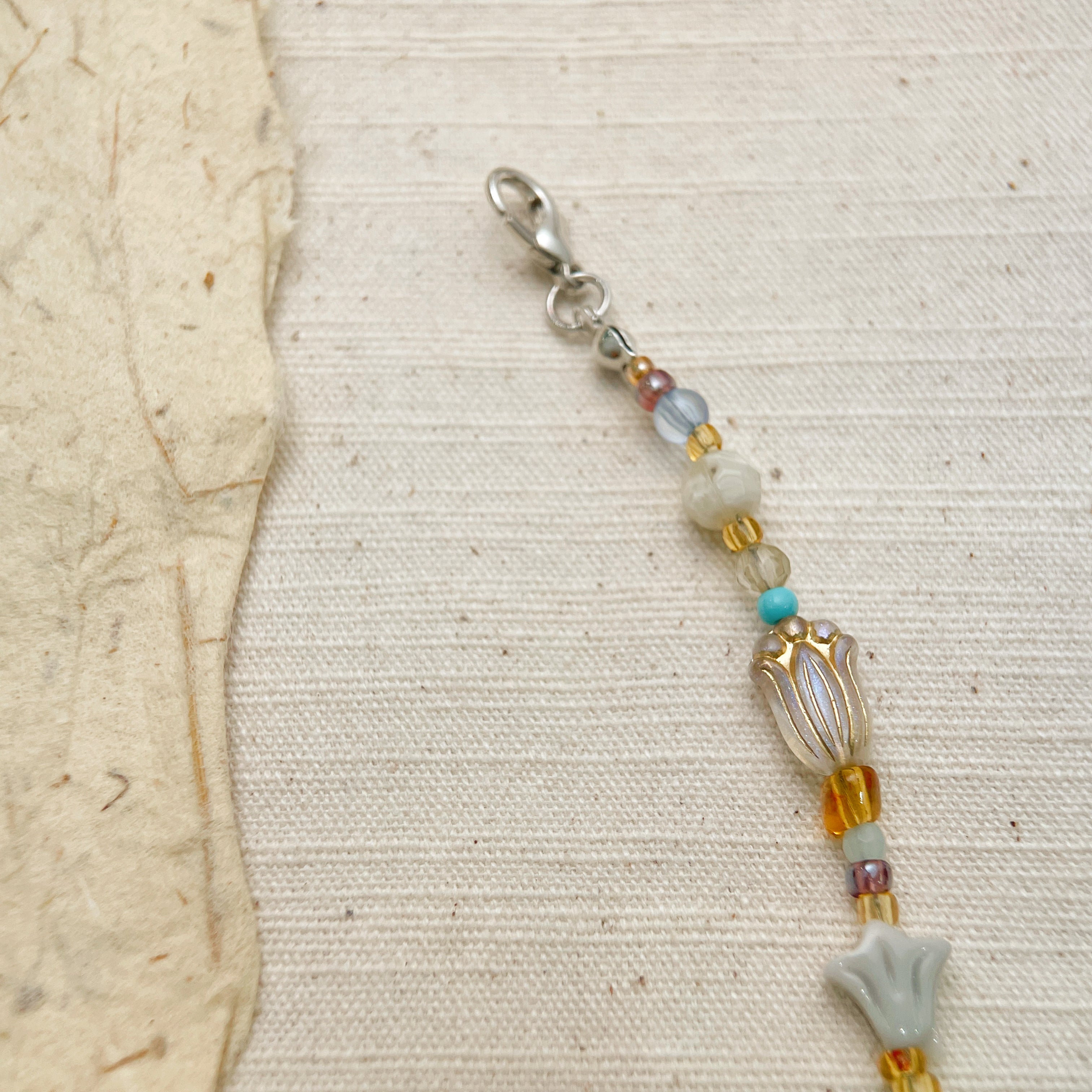 • Nature-Inspired Design: The floral charm adds a whimsical, natural element that complements the organic gemstones.