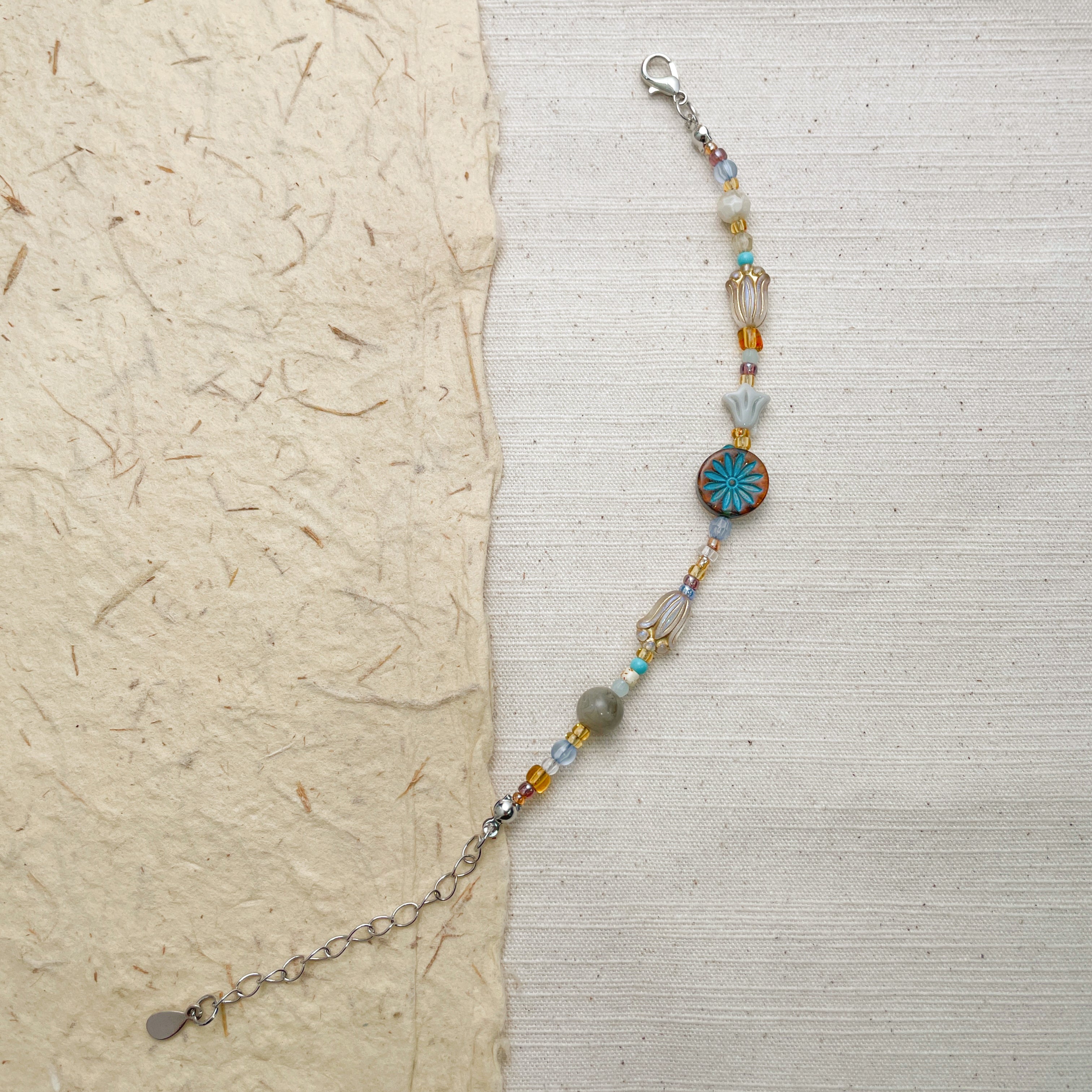 Handmade Boho Gemstone Bracelet – Floral Charm Design