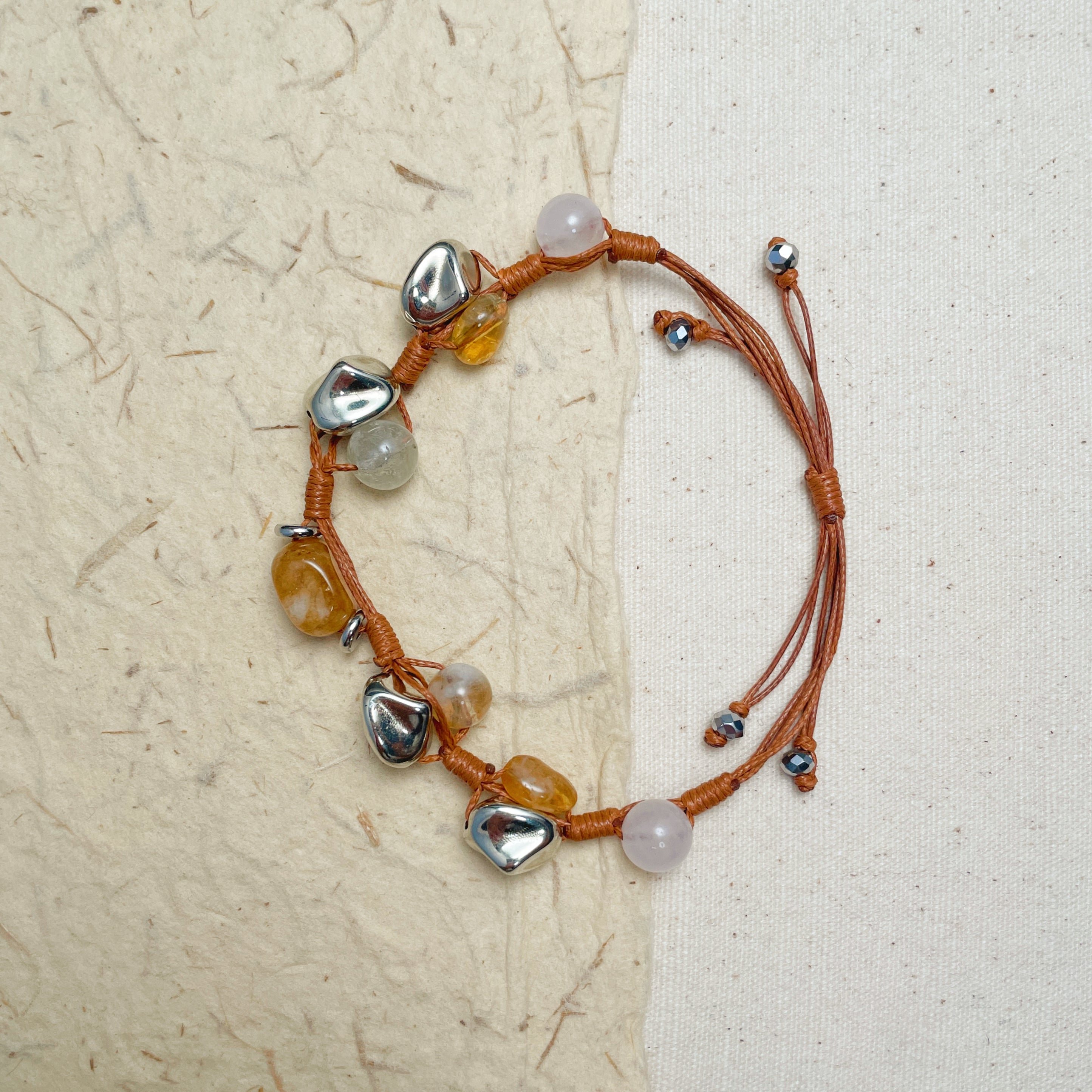 Embrace stability and calm with this Handmade Brown Cord Gemstone Bracelet. Featuring warm woven cords adorned with smooth natural stone beads and subtle metallic accents, this piece embodies **earthy boho style**.