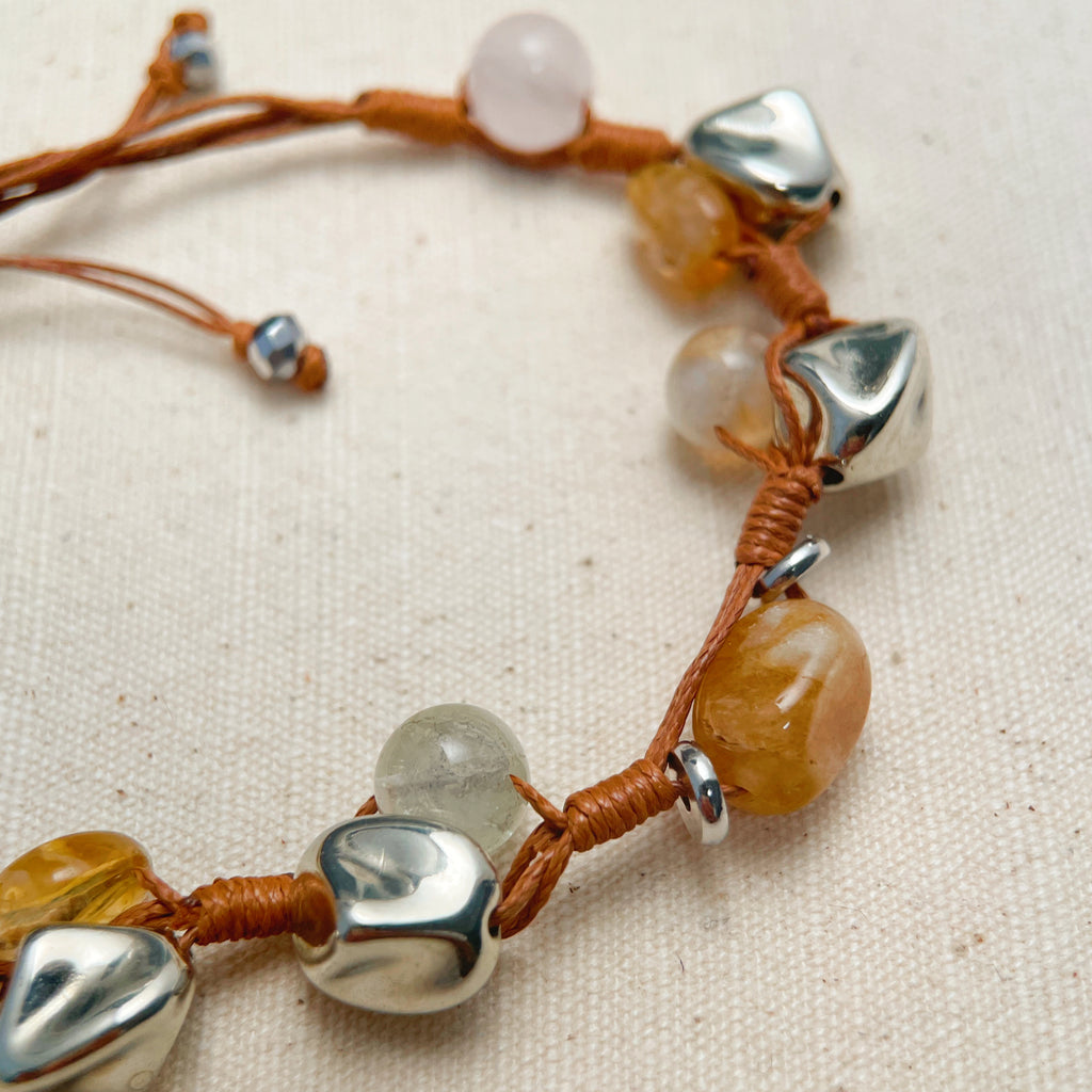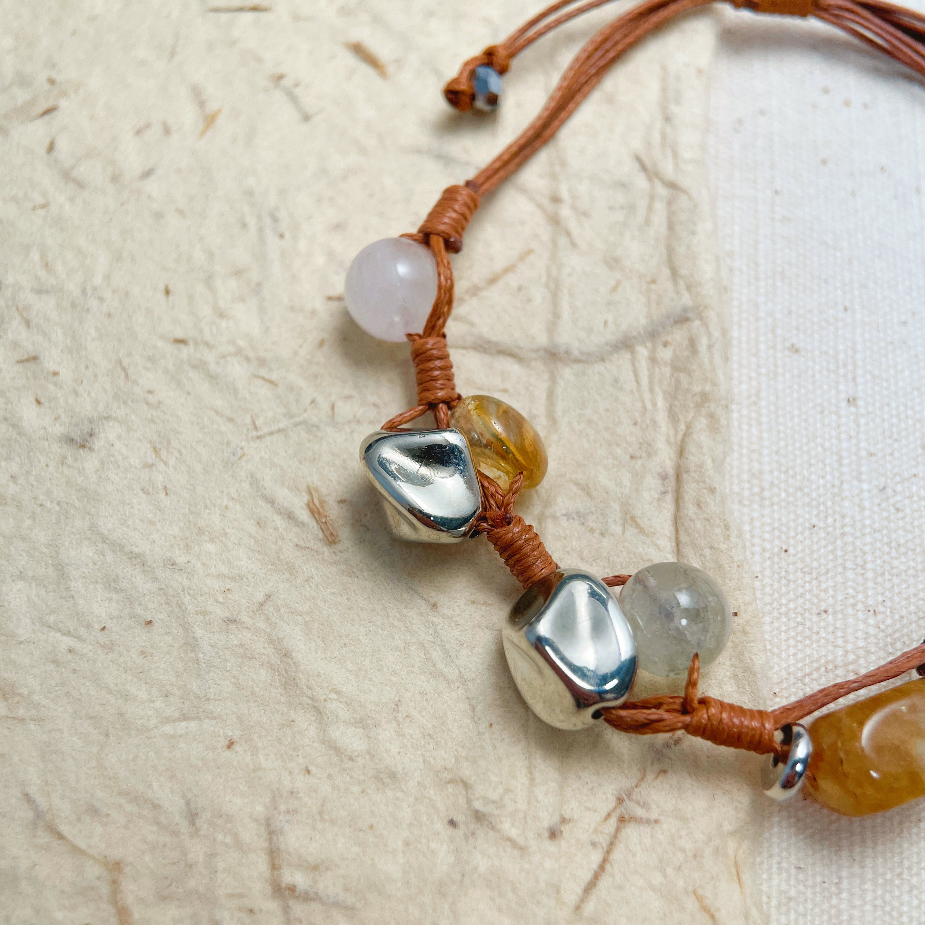 Connect with Nature: Brown Cord Gemstone Bracelet