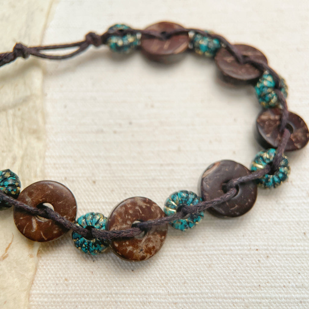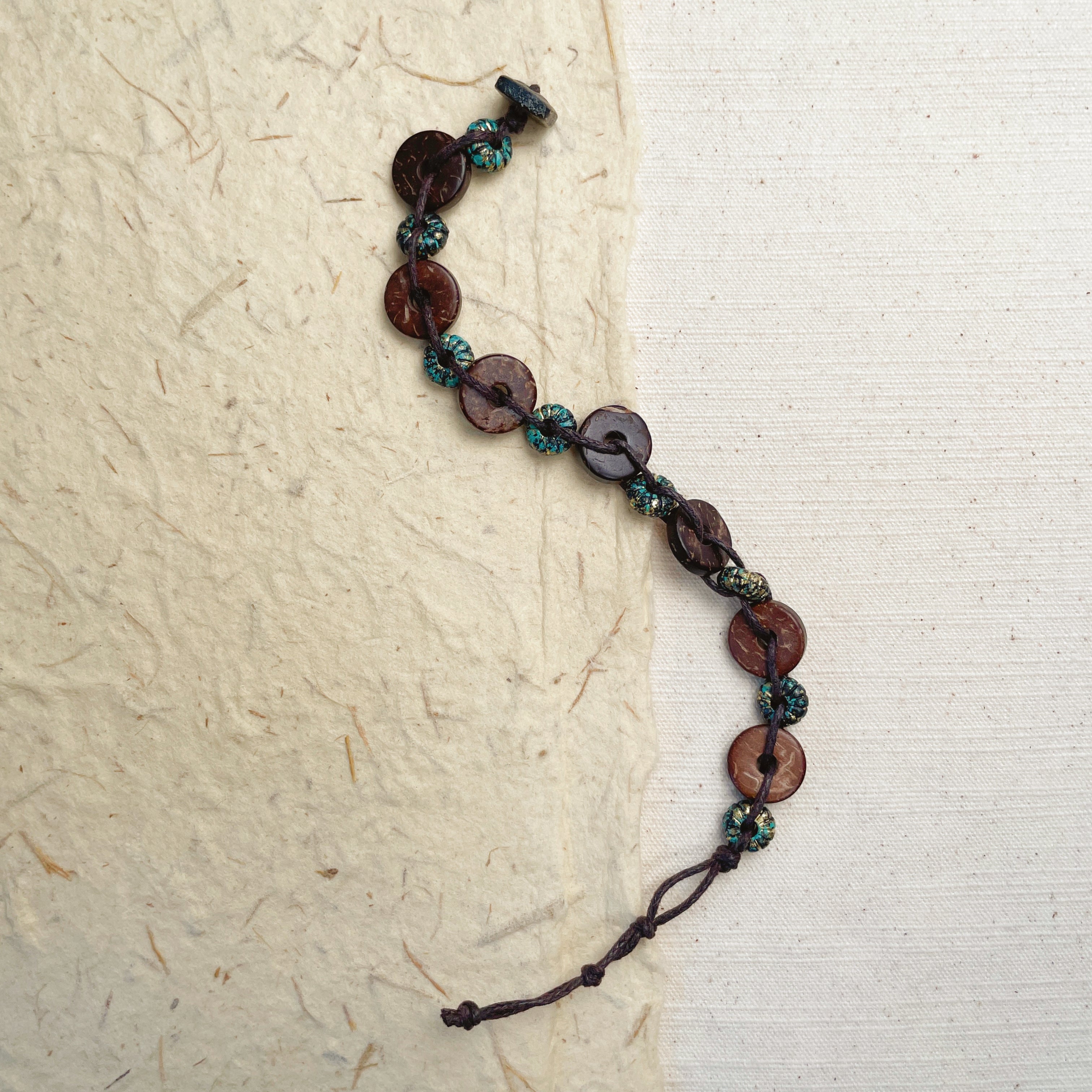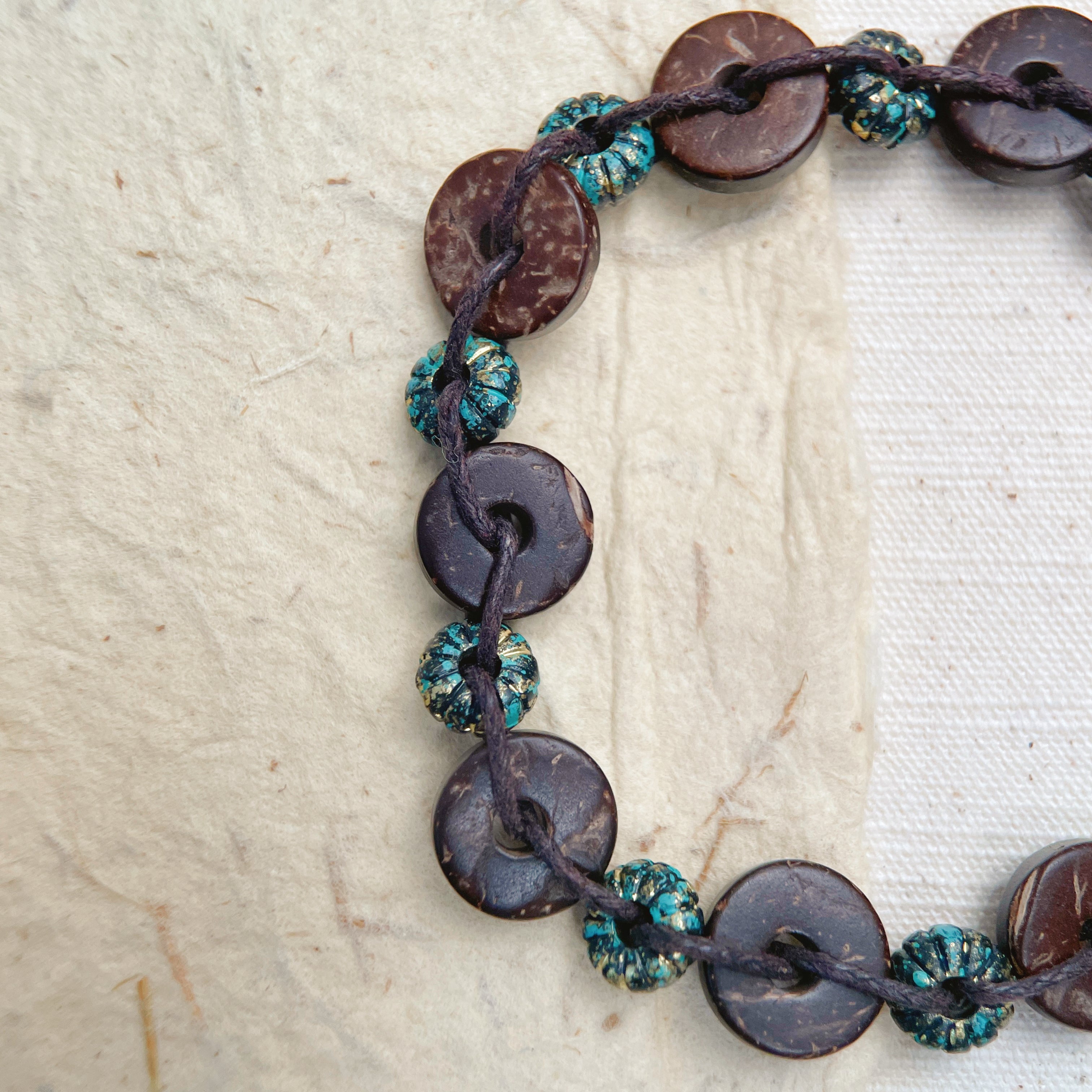 Handmade Coconut Shell Bead Bracelet – Natural Boho Eco Design