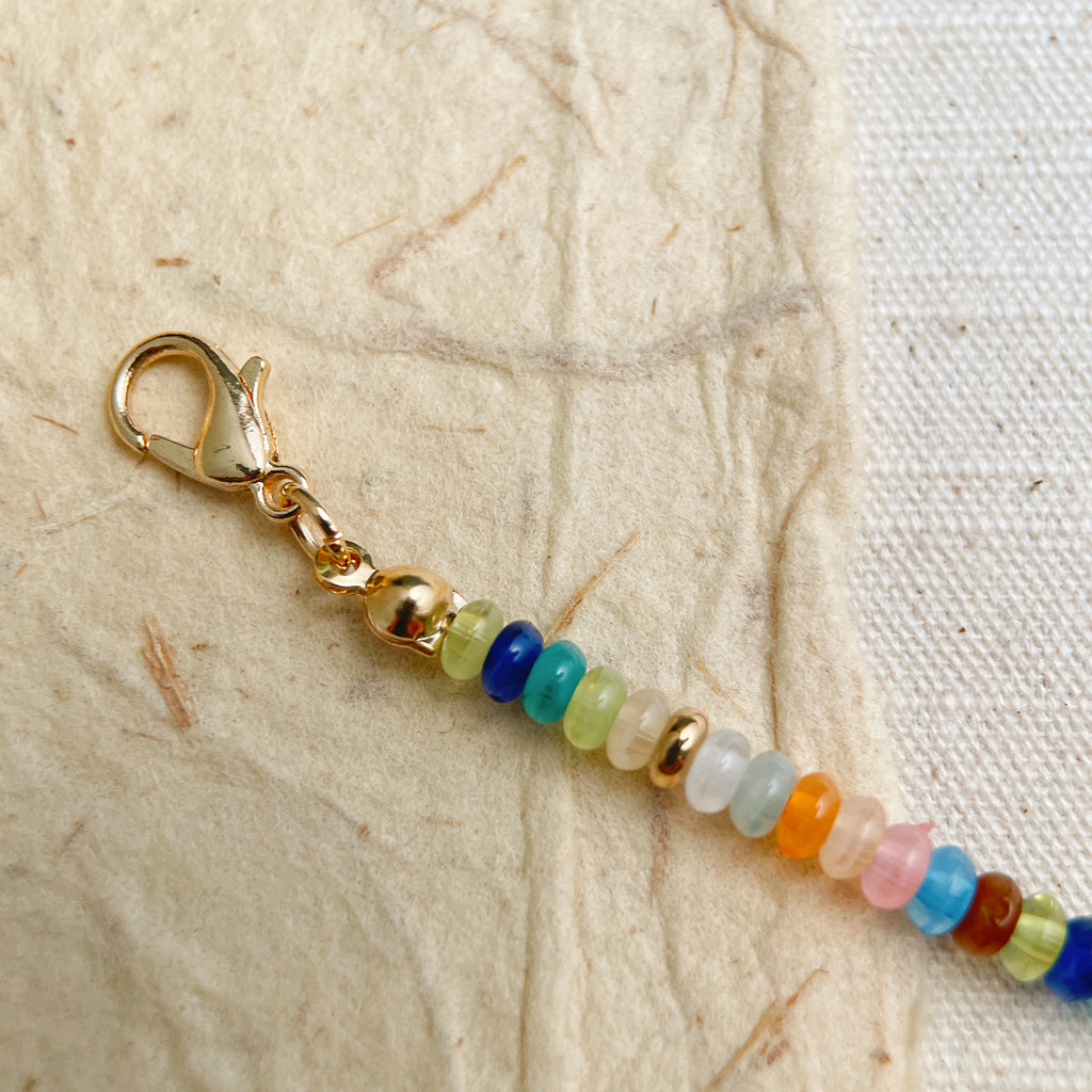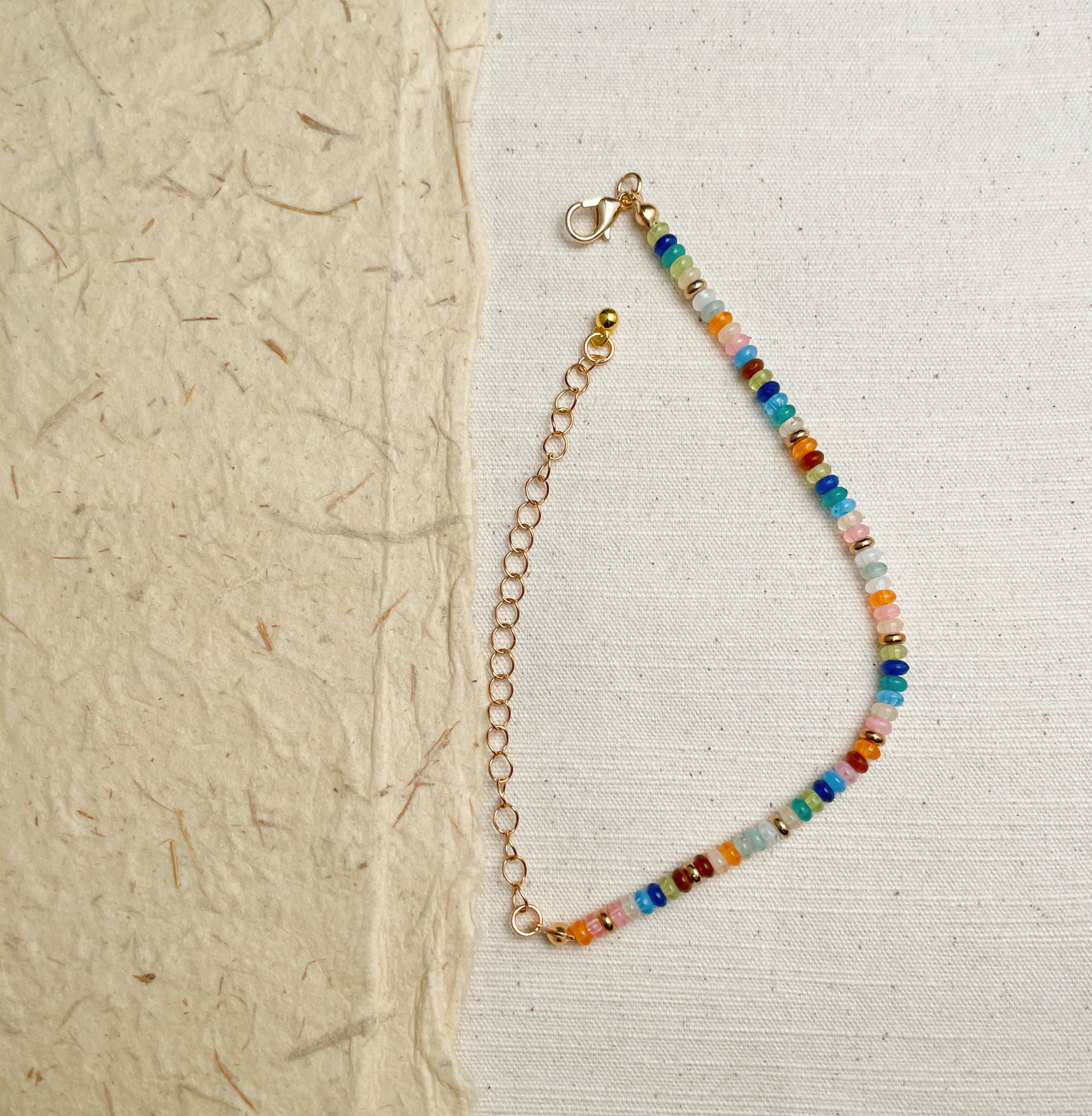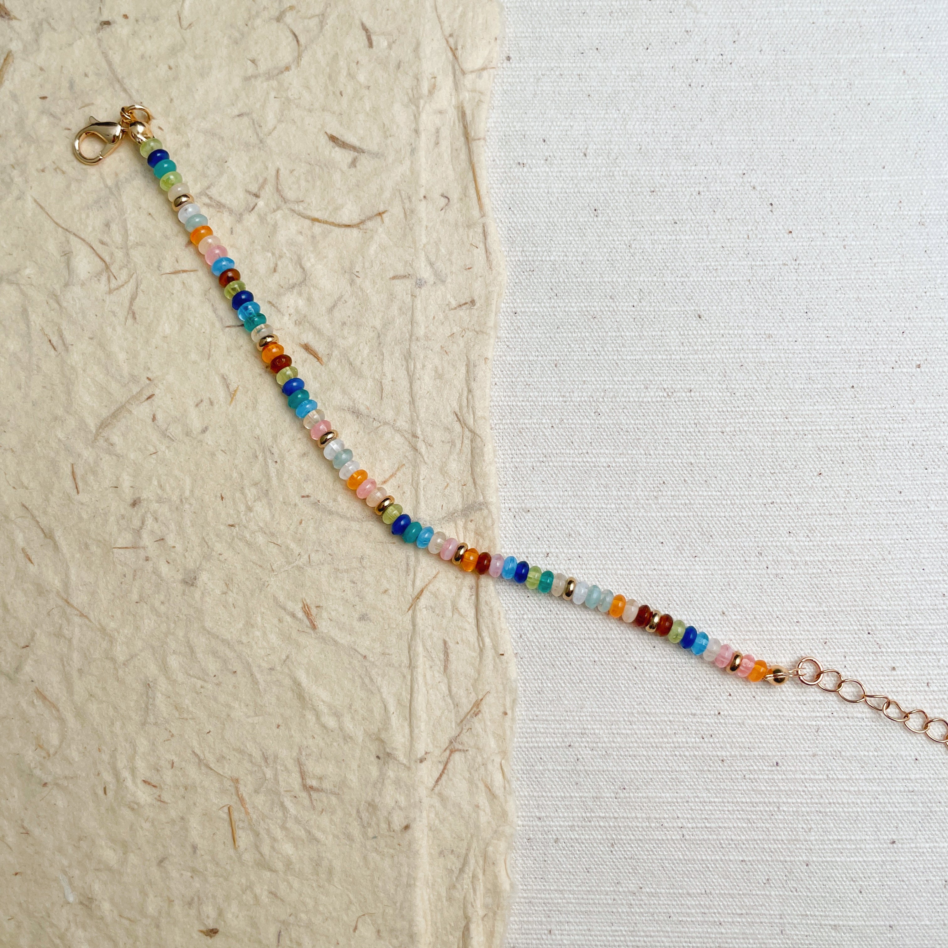 Handmade Rainbow Beaded Bracelet – Boho Gold Chain Design