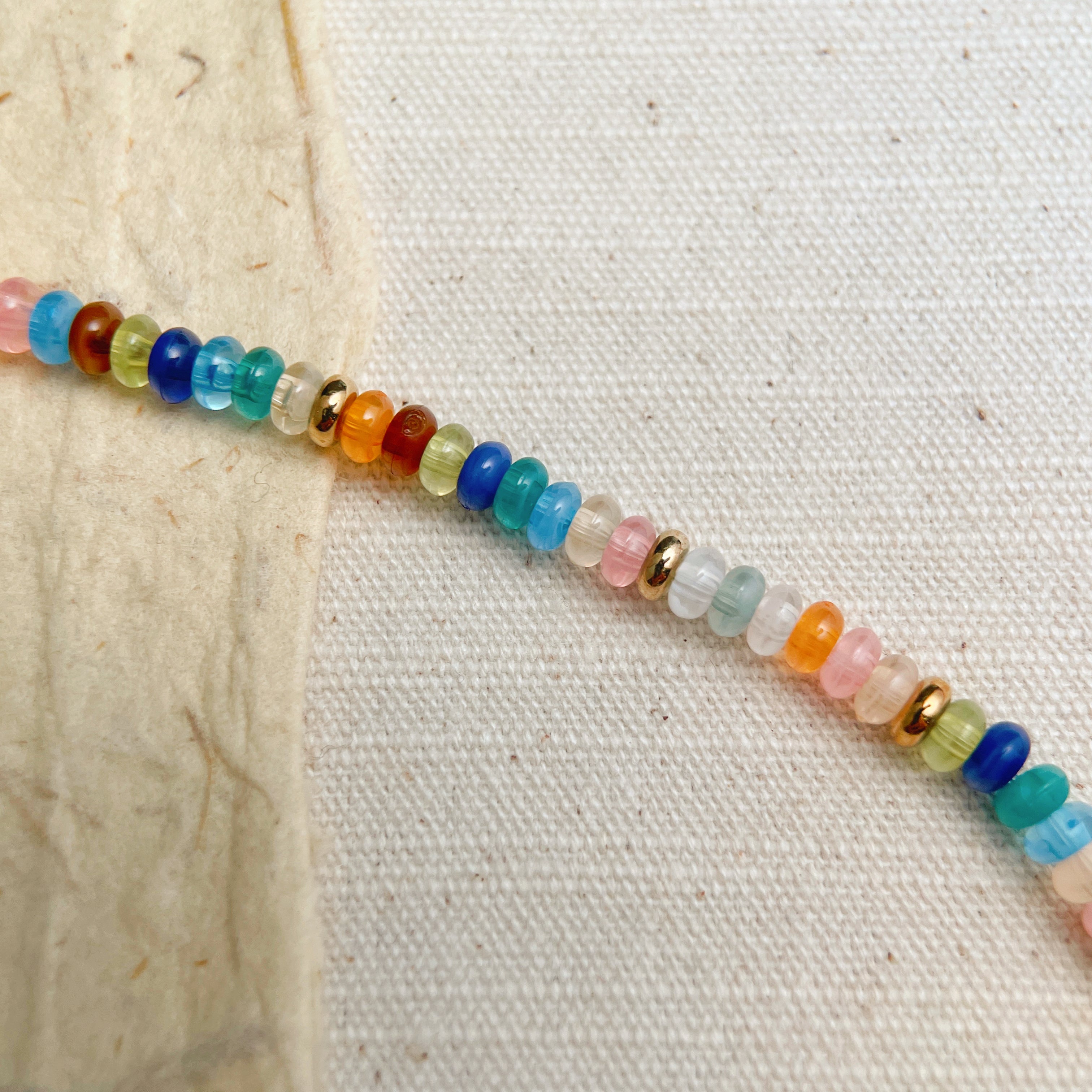 Infuse your style with optimism using this Handmade Rainbow Beaded Bracelet. Featuring a cheerful mix of colorful glass beads paired with delicate gold-tone accents, this piece captures the joy and freedom of **boho soul jewelry**.