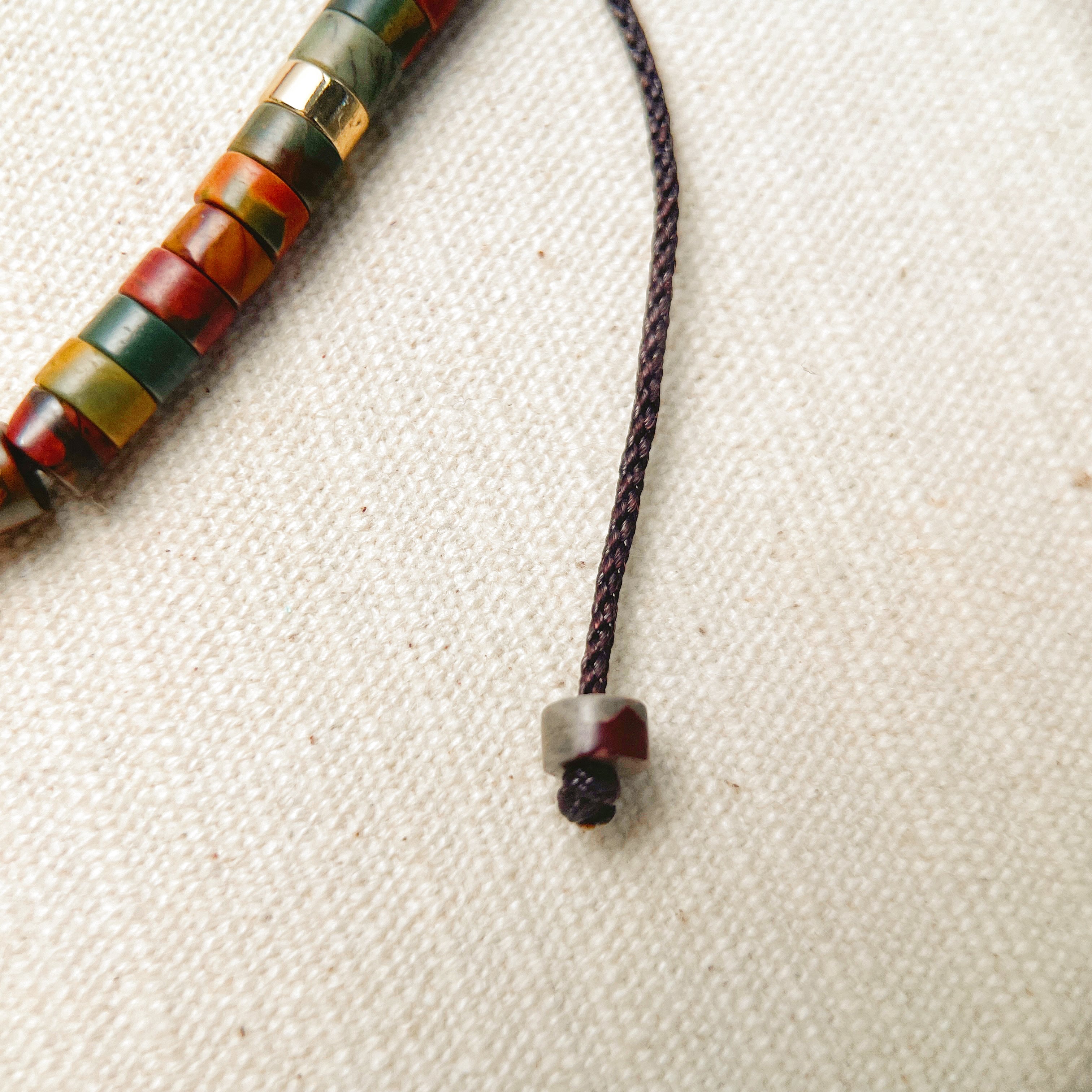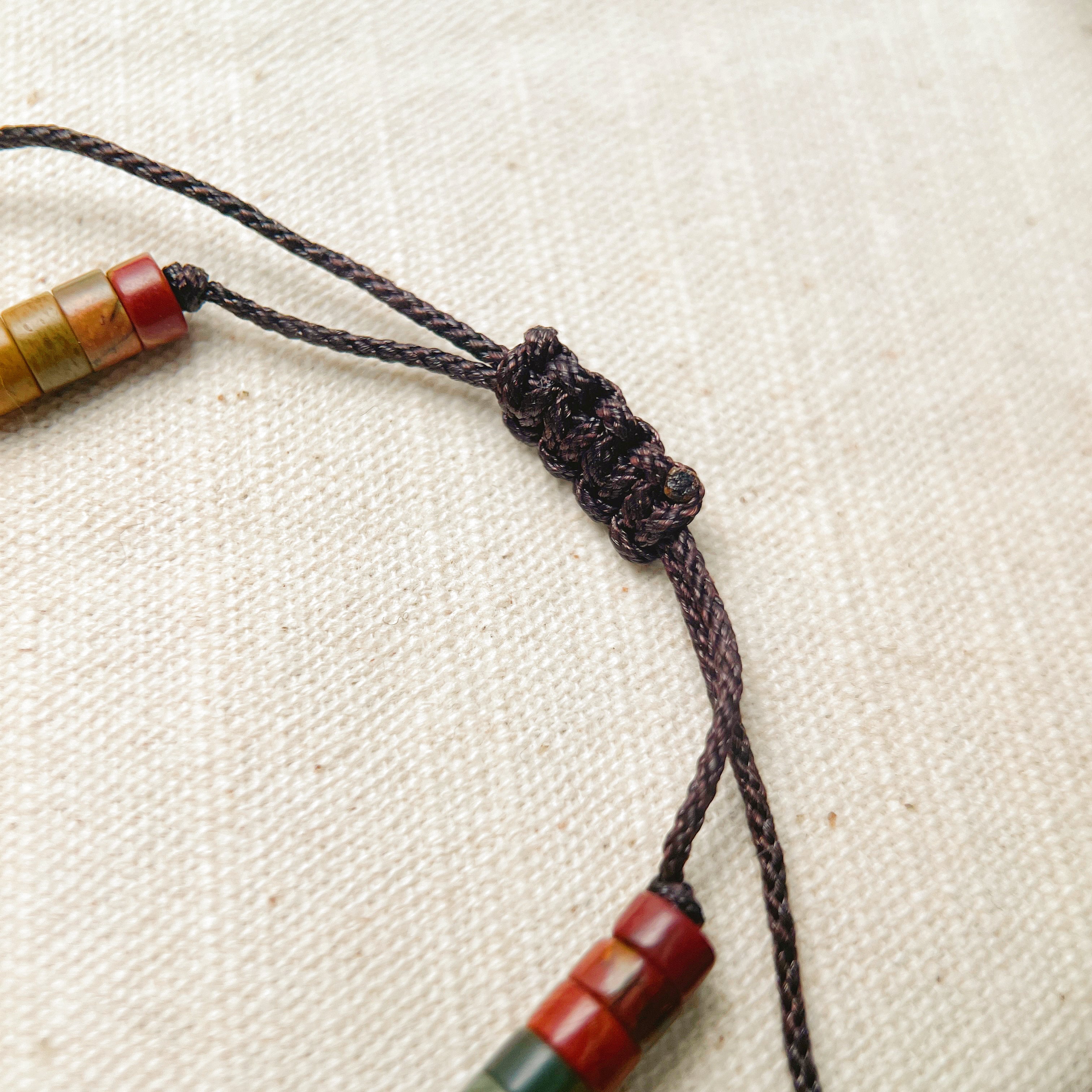 Experience the perfect blend of modern geometry and organic beauty. This Jasper tube bead bracelet features an adjustable sliding knot, making it a comfortable, stylish choice for any wrist.
