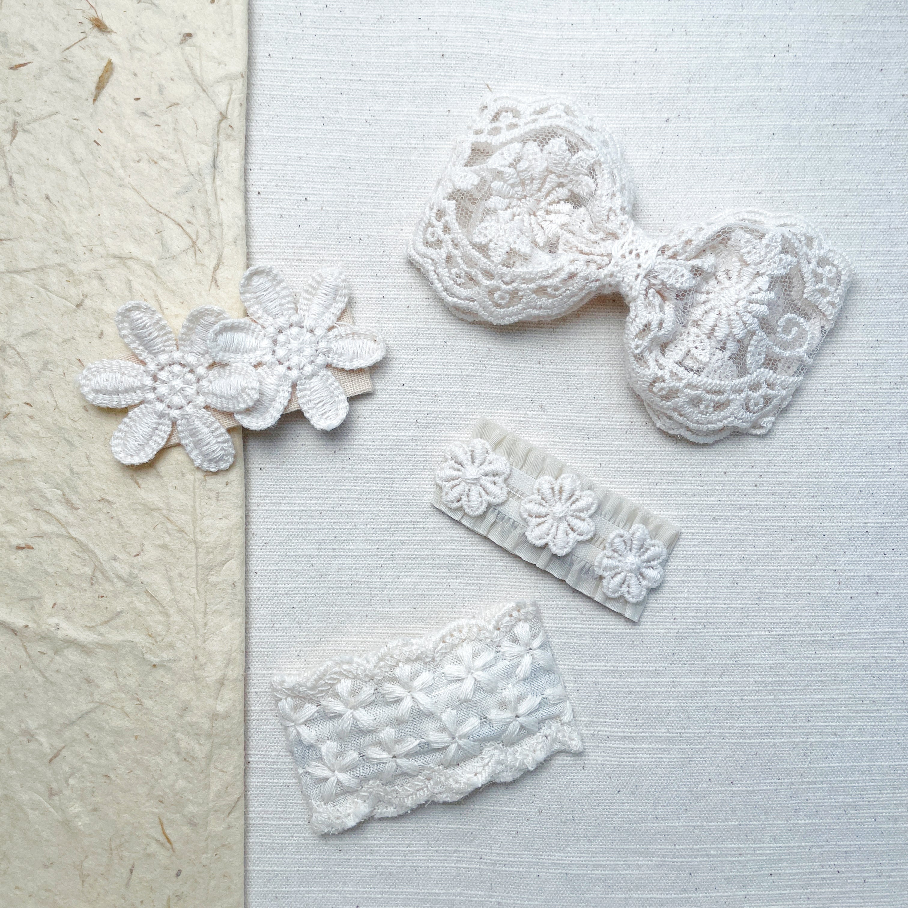 Handmade Embroidered Lace Hair Bow Set – Coquette Floral Design