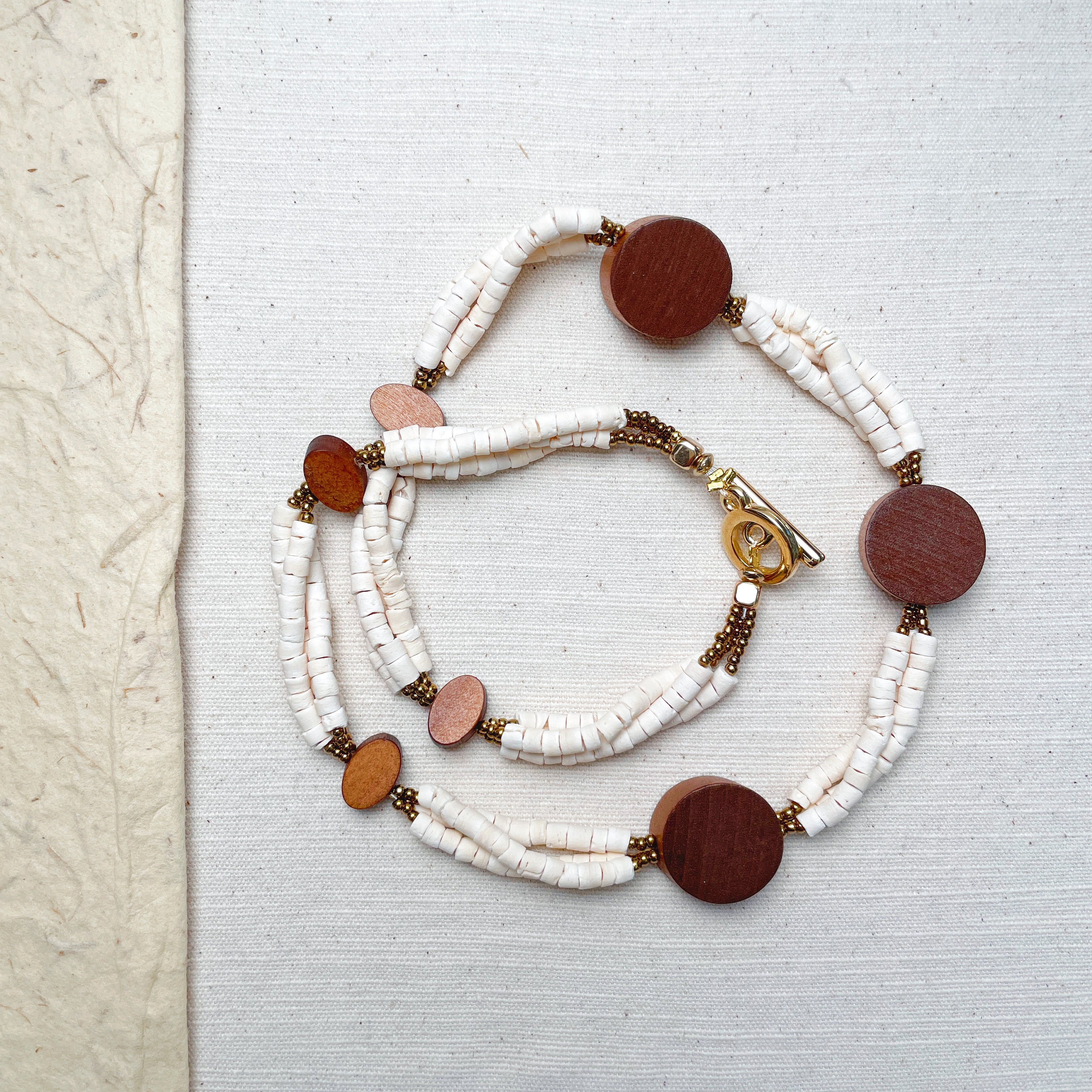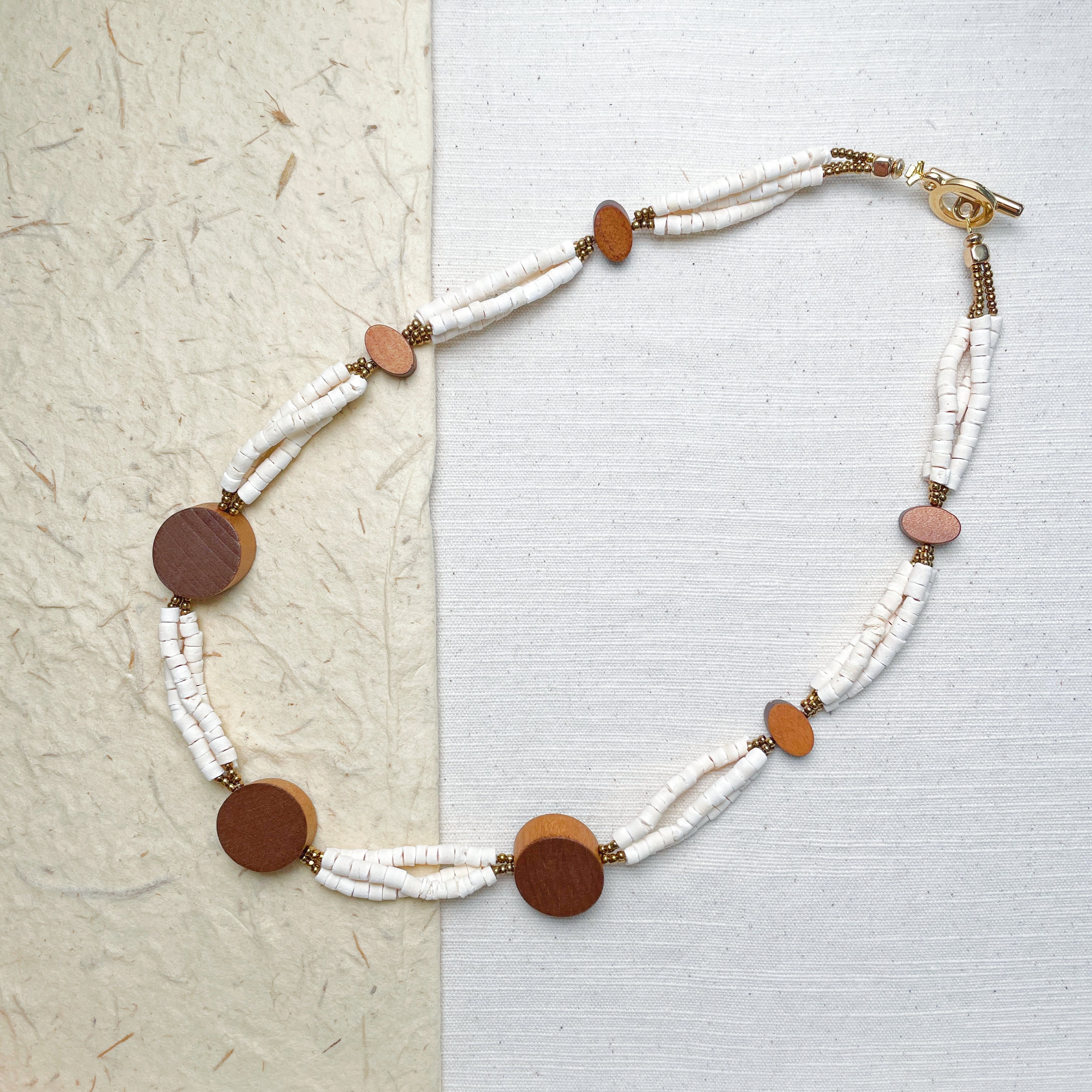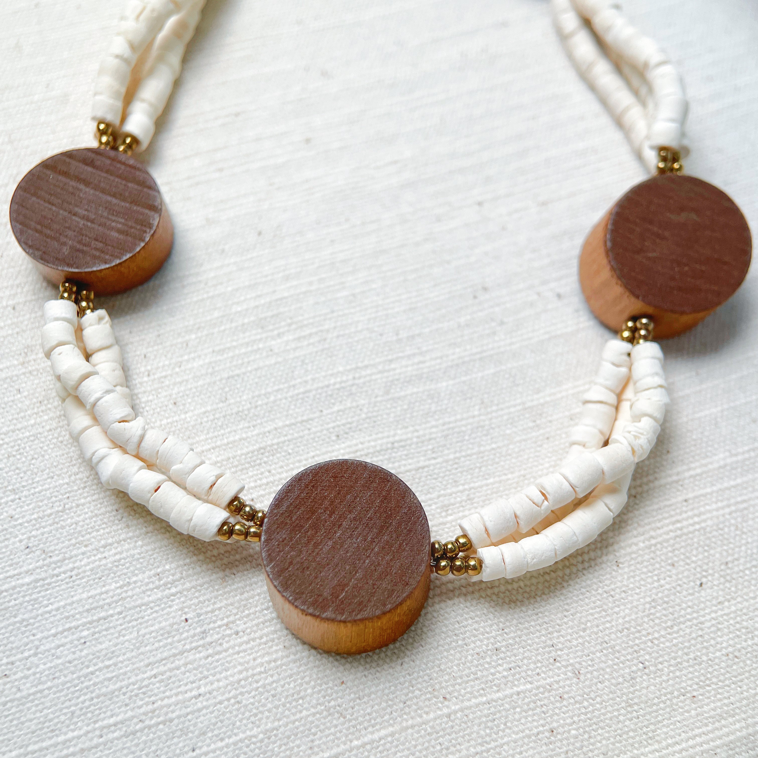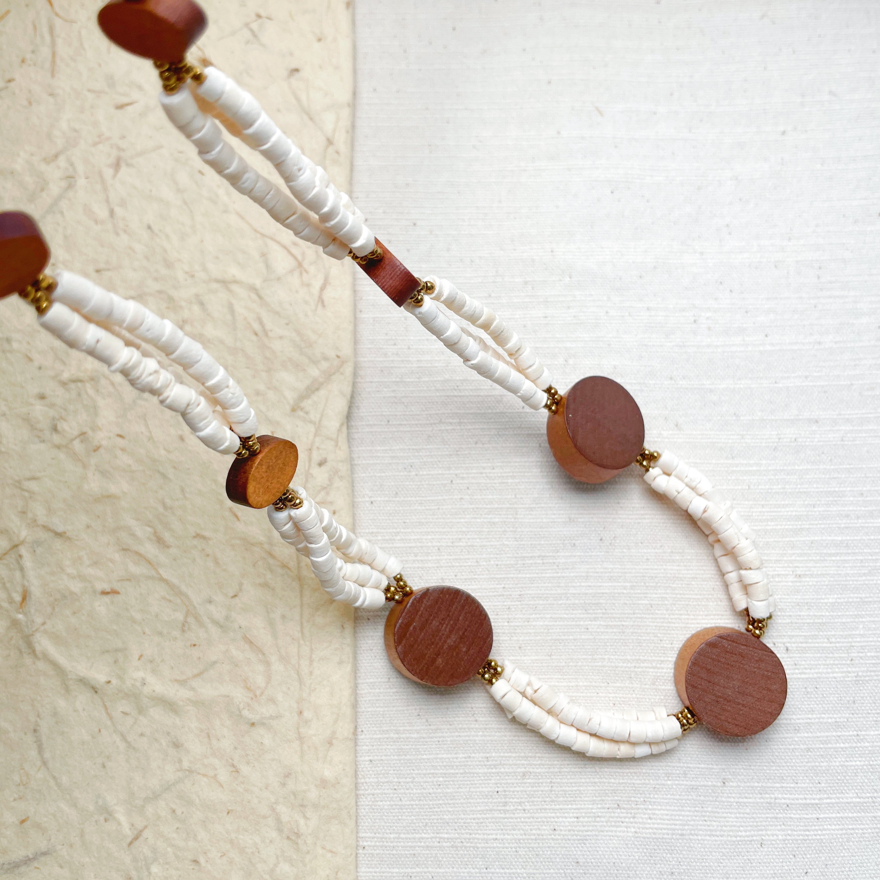 Coastal Minimalist: Shell Heishi & Wood Disc Necklace
