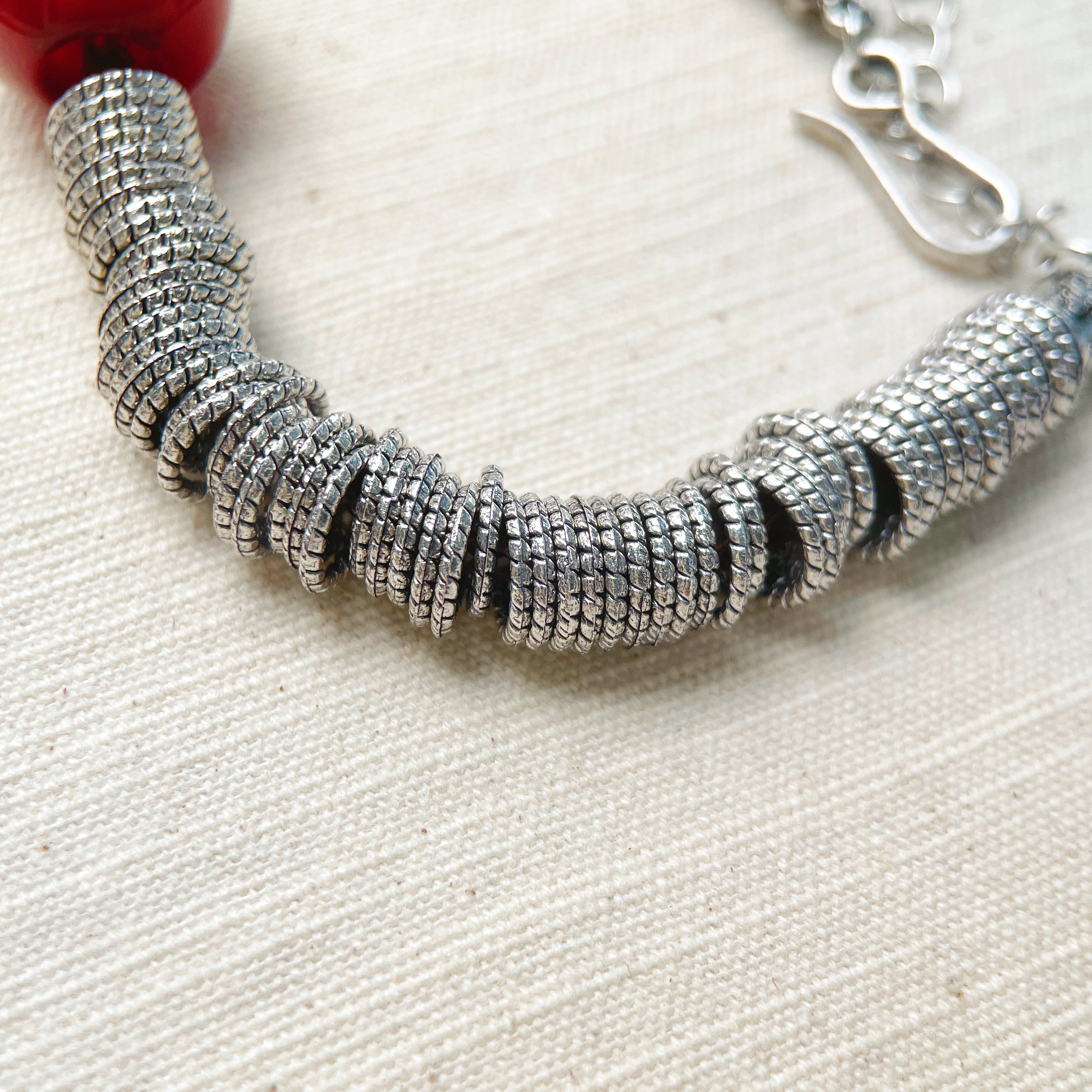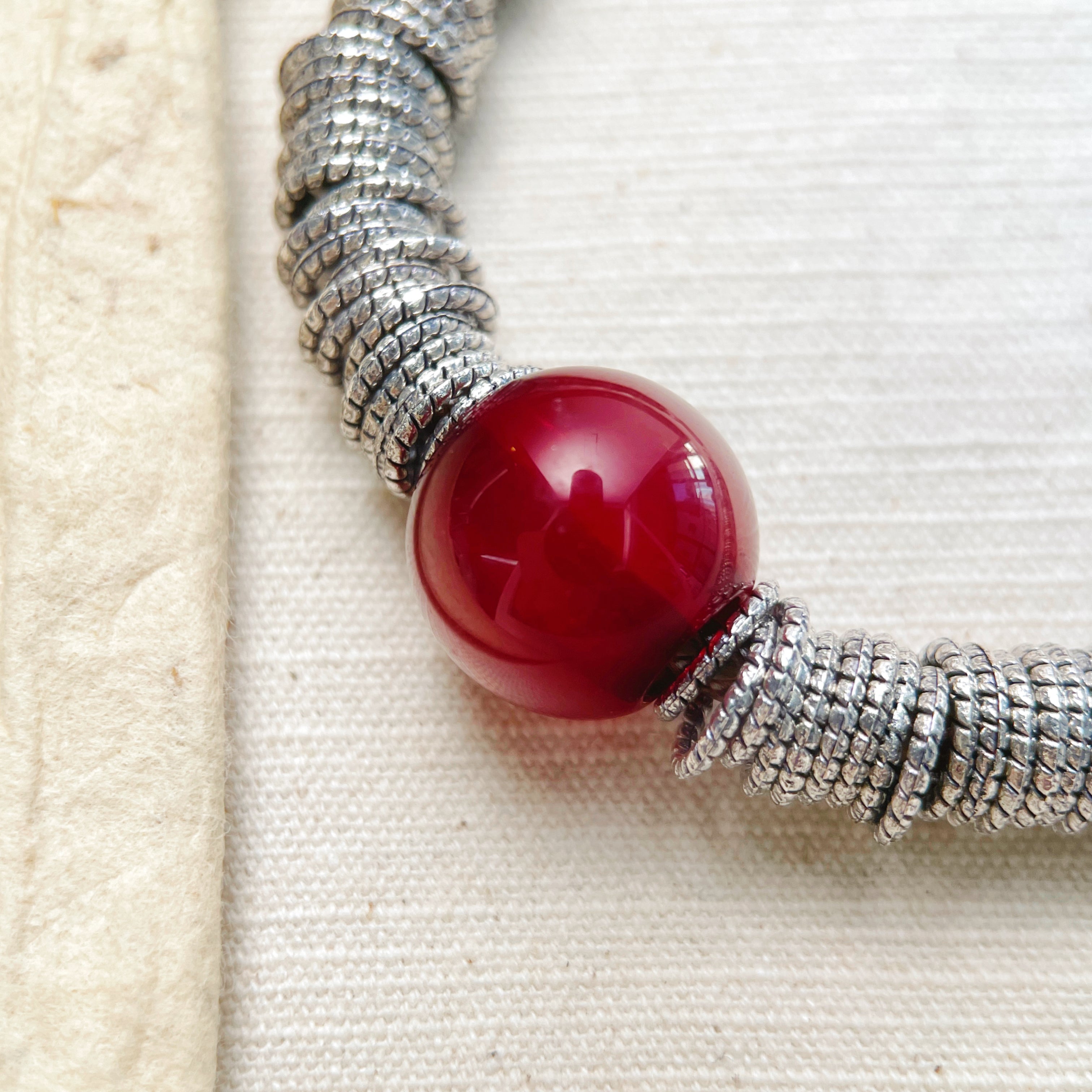 • Materials: Silver-Tone Metal Discs, Red Bead (Agate/Carnelian style), Alloy