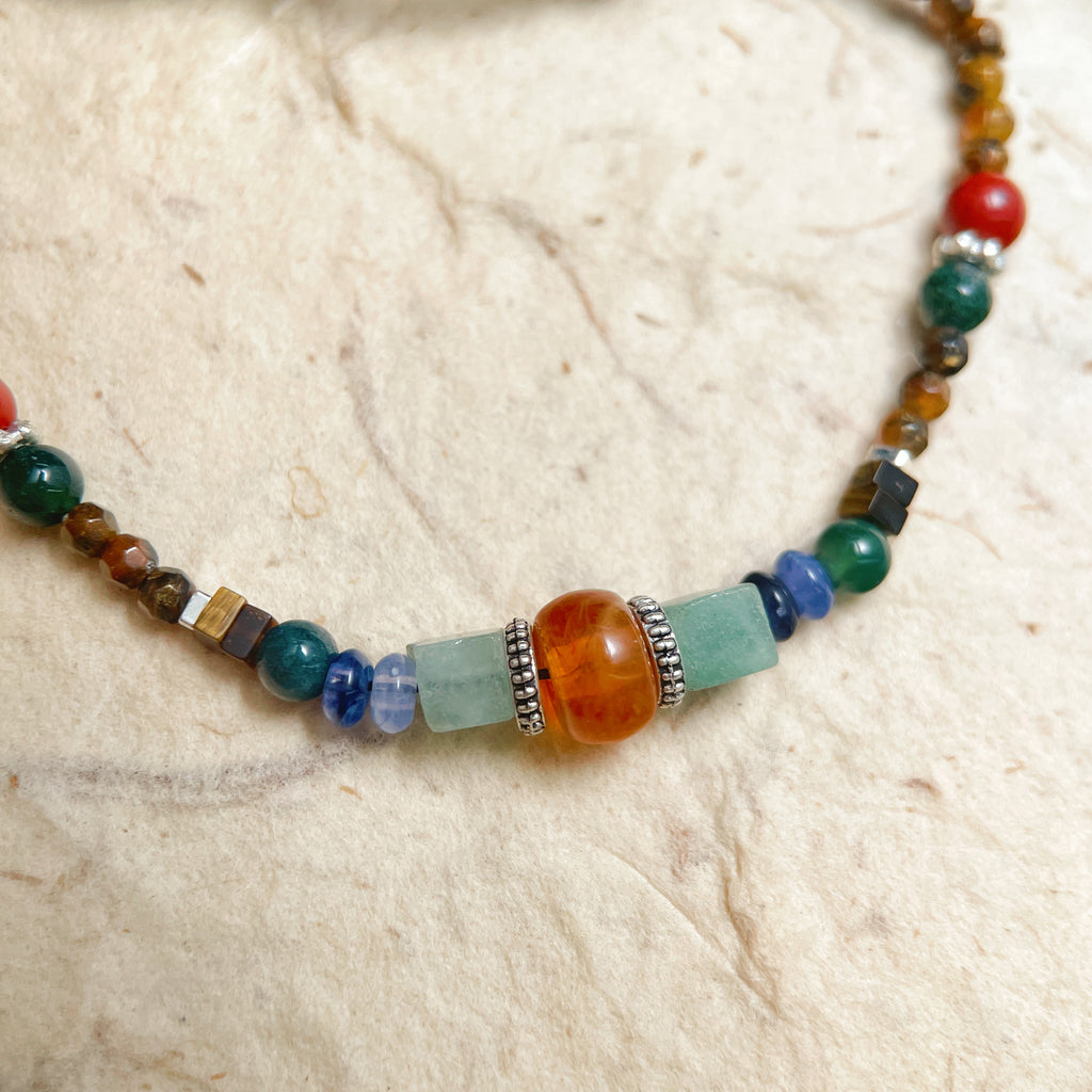 • Materials: Waxed Cord, Tiger's Eye, Agate, Aventurine, Alloy