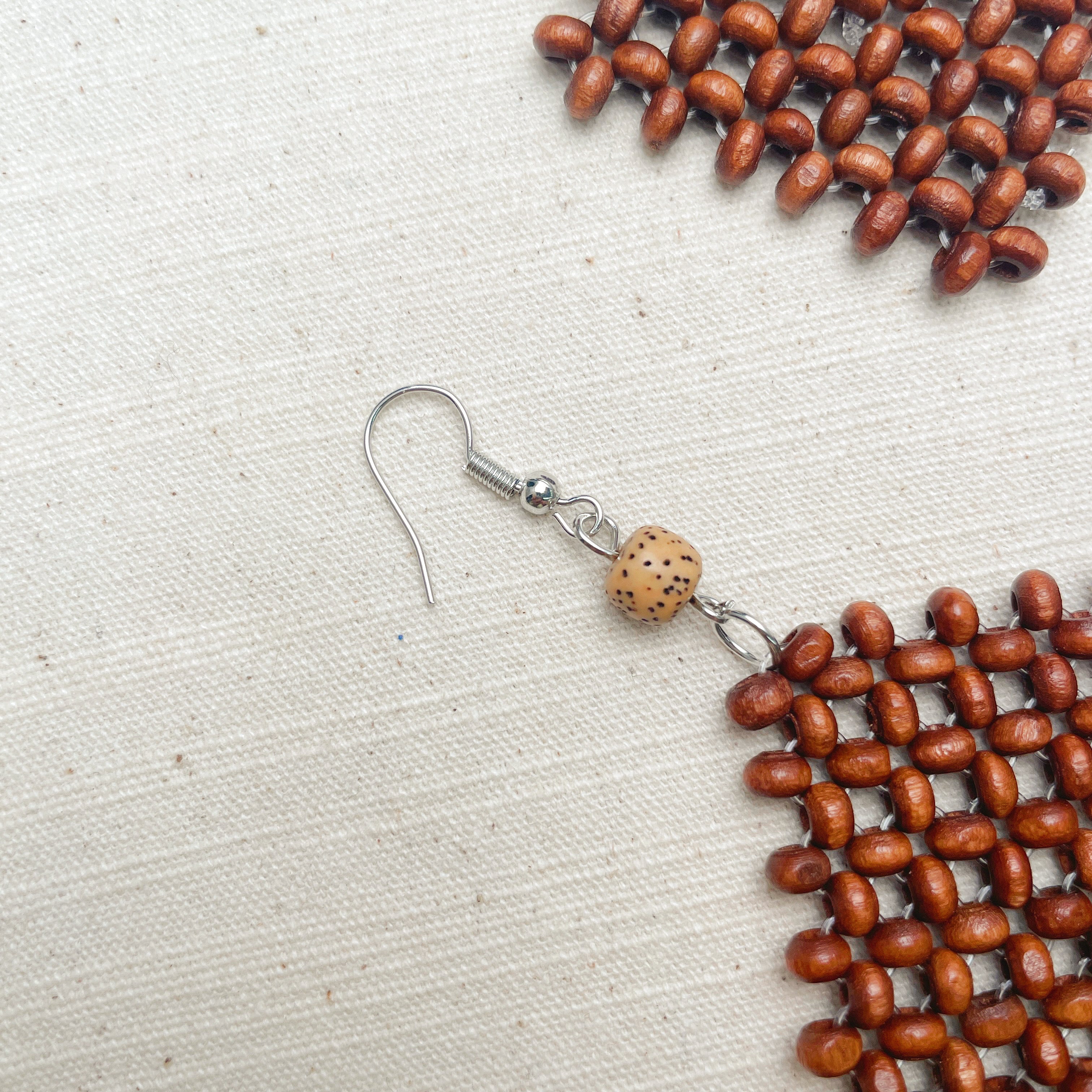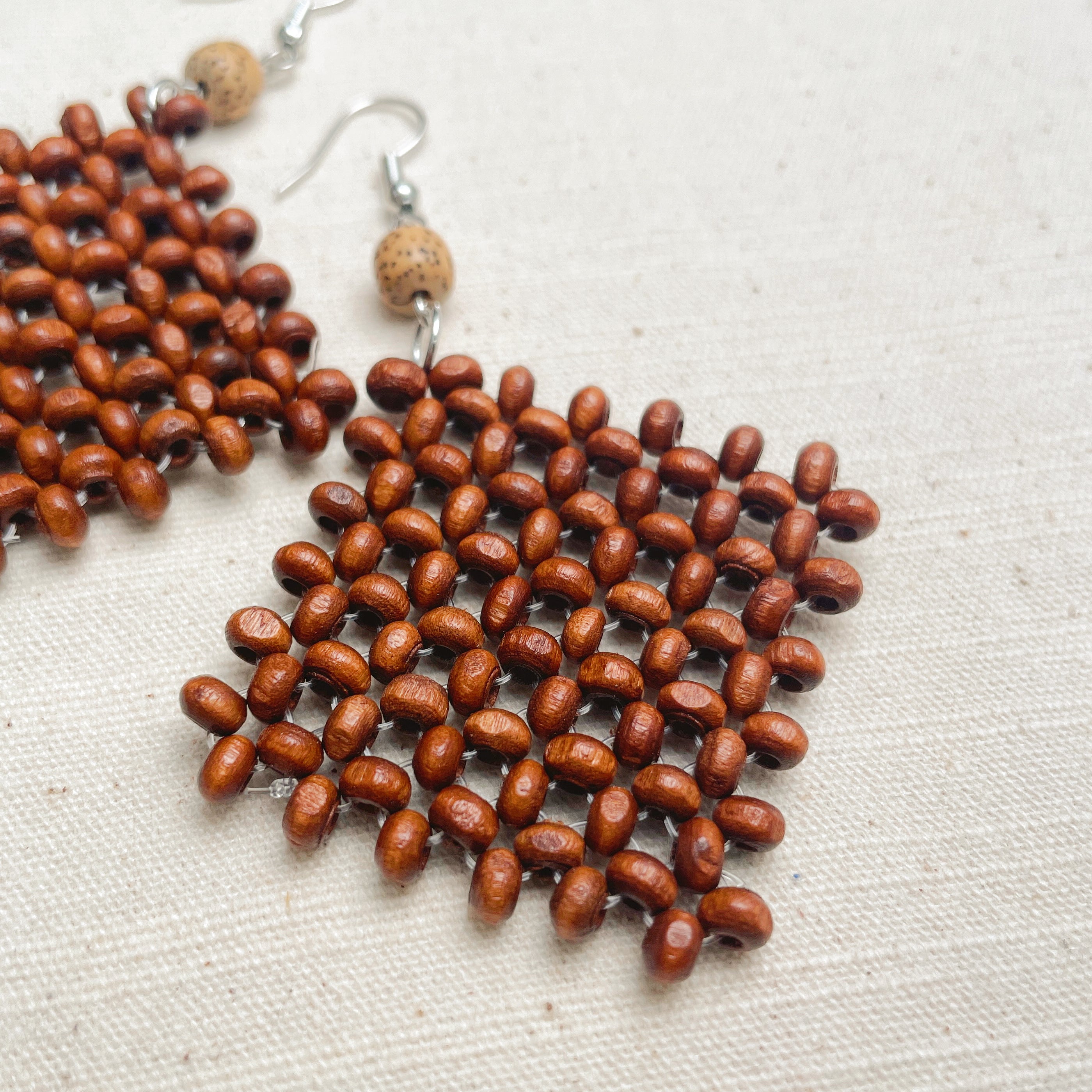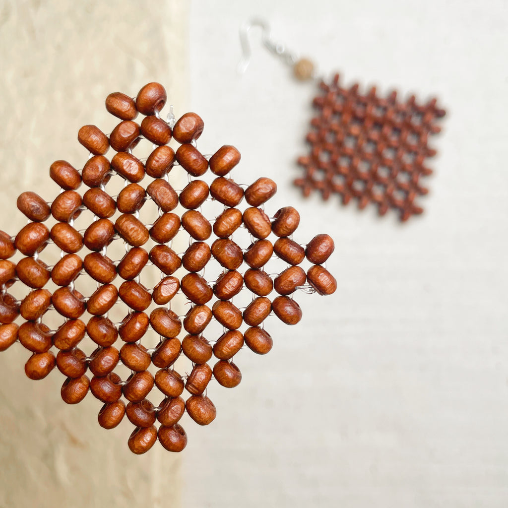Wear the Earth: Woven Wood Bead Geometric Earrings