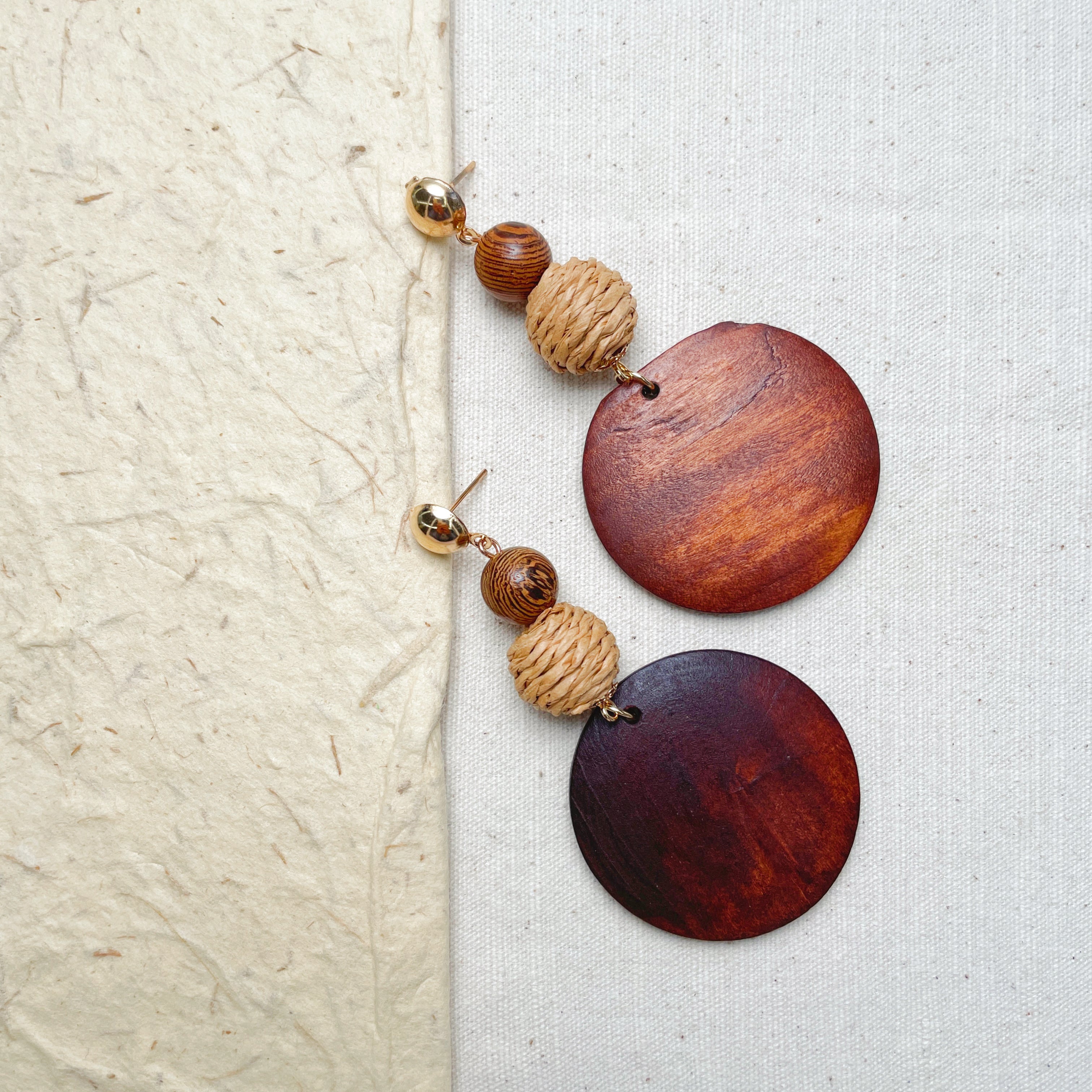 Wooden Tiered Statement Earrings – Tropical Boho Drop